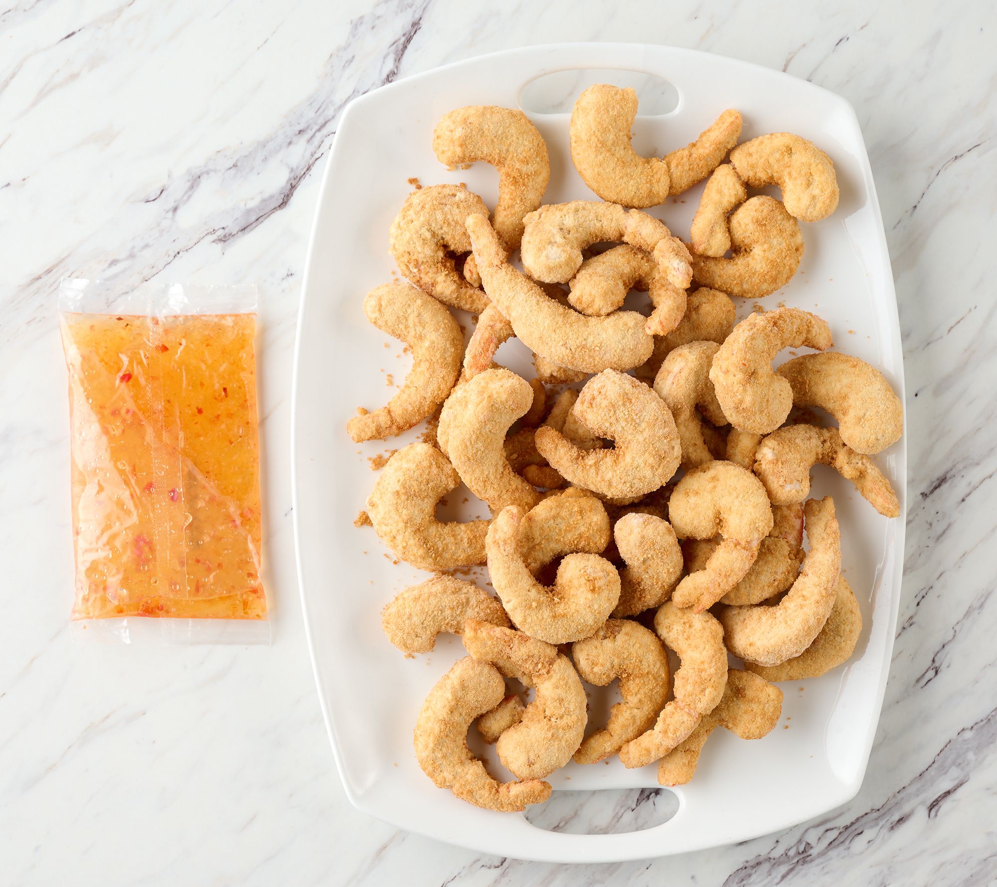 • Includes two 1.5-lb bags of breaded colossal shrimp and 7-oz sweet chili dipping sauce