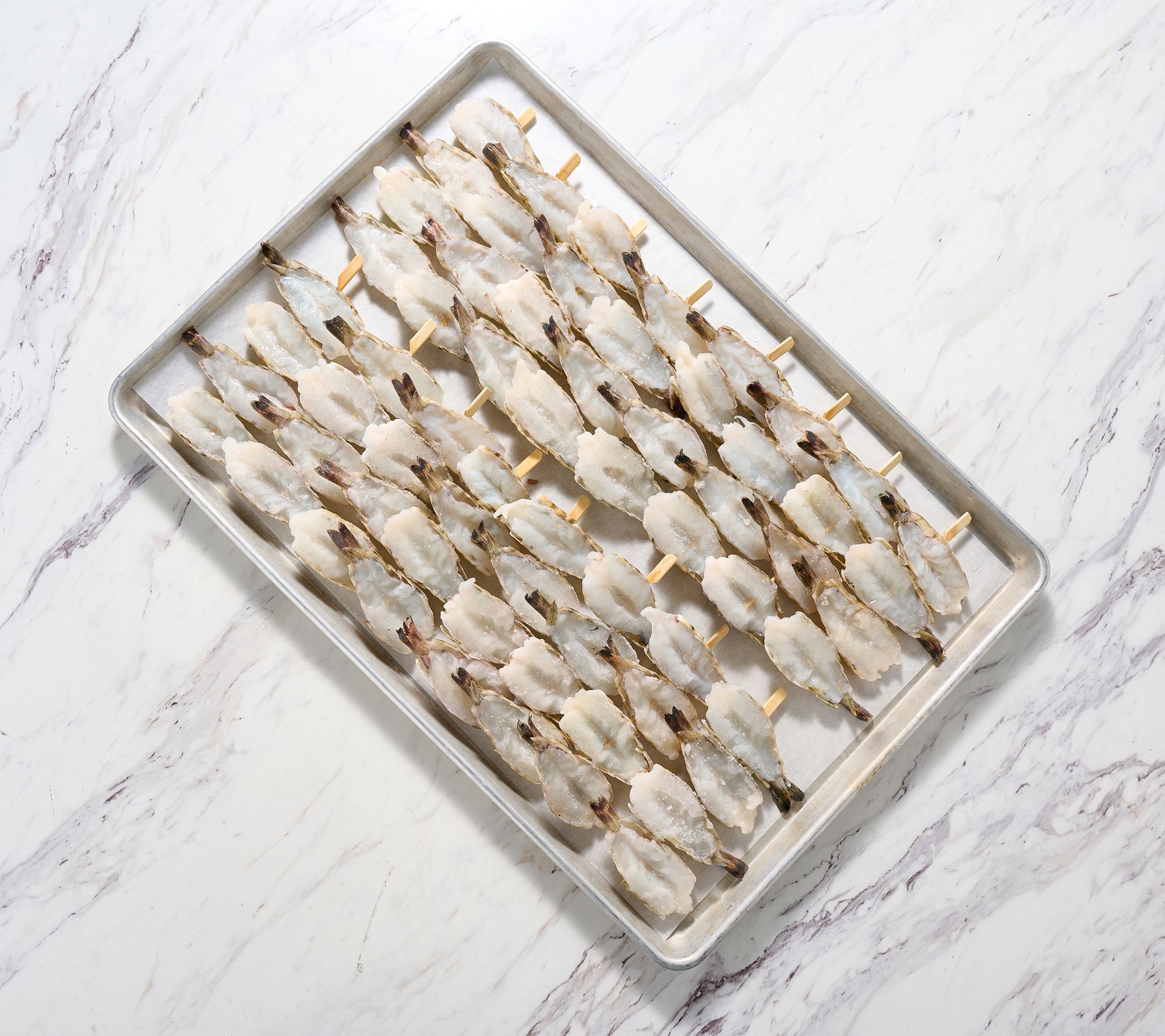 Includes 64 butterflied shell-on jumbo shrimp on 16 skewers; four shrimp per skewer