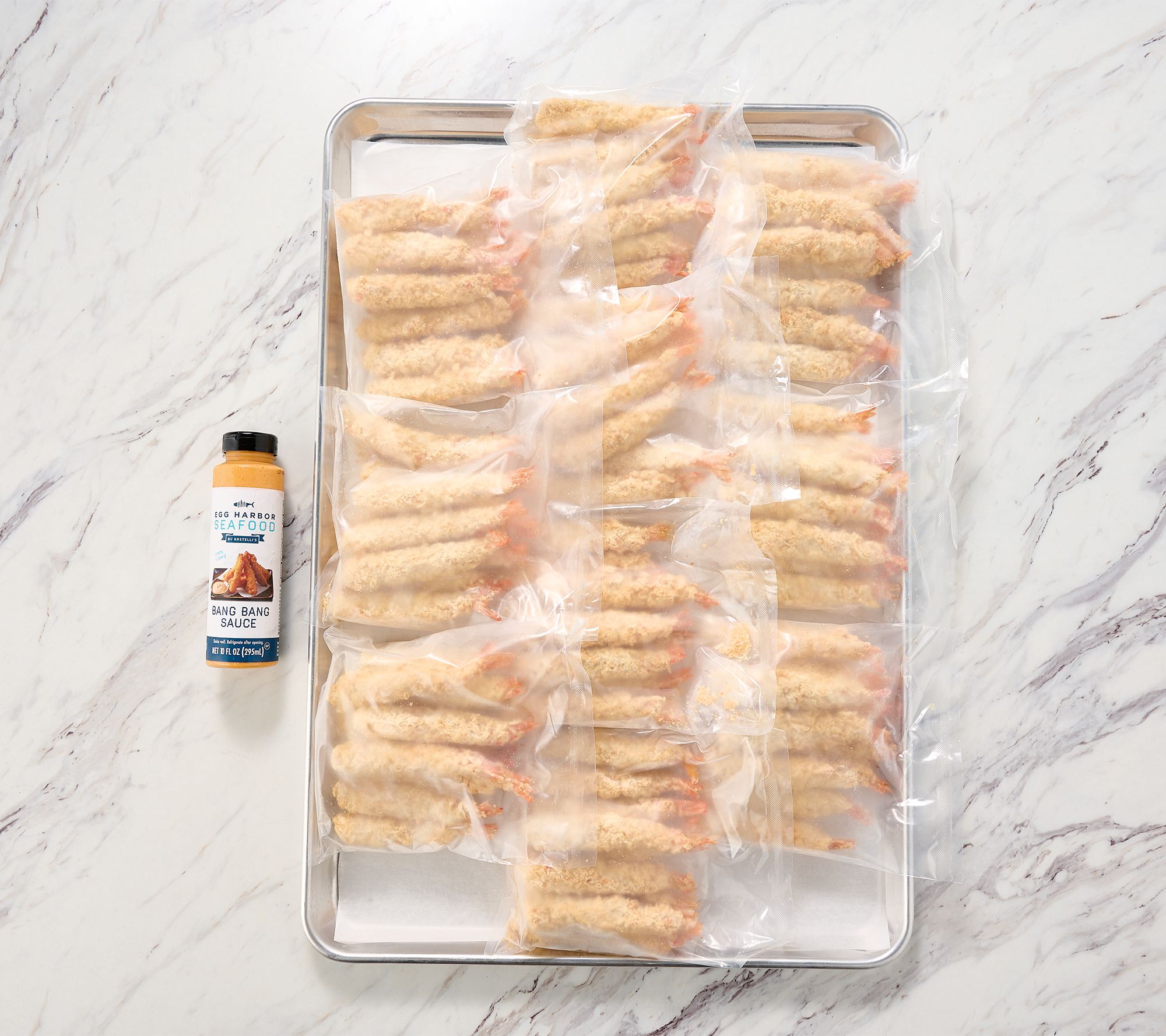 Includes 90 Japanese-style Ebi fried shrimp and 10-oz bottle of sauce in choice of Bang Bang, Sesame Teriyaki, or Yum Yum