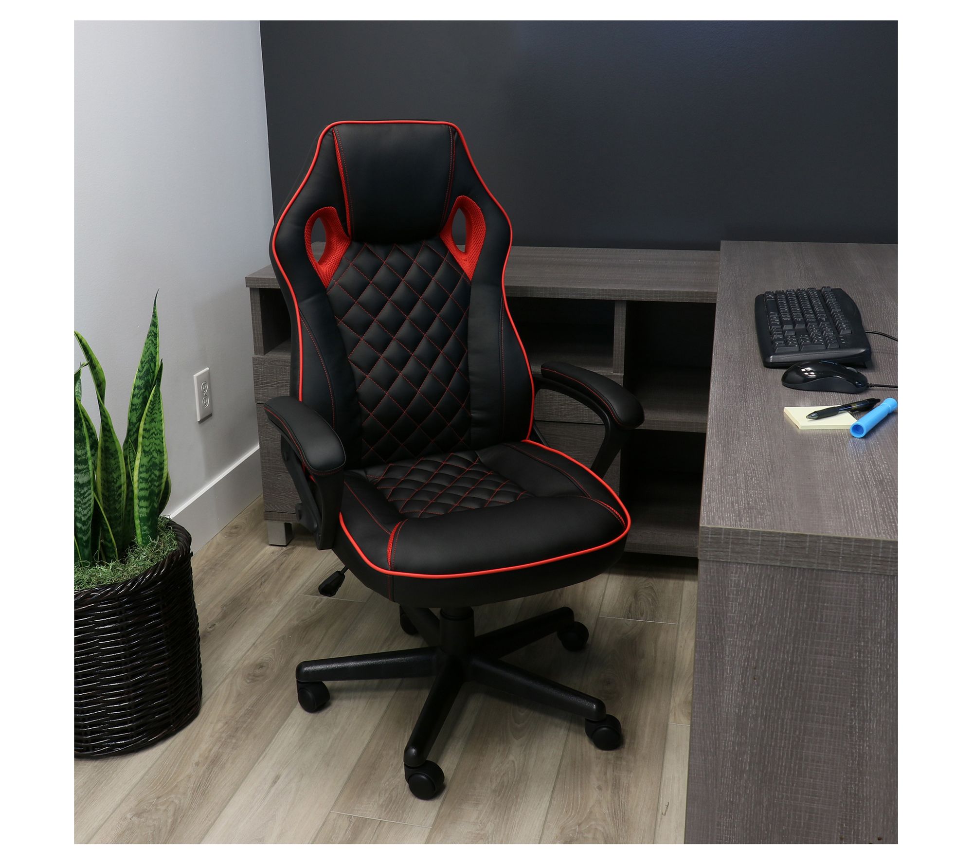 Elama Adjustable Faux Leather Gaming Chair -Black/Red