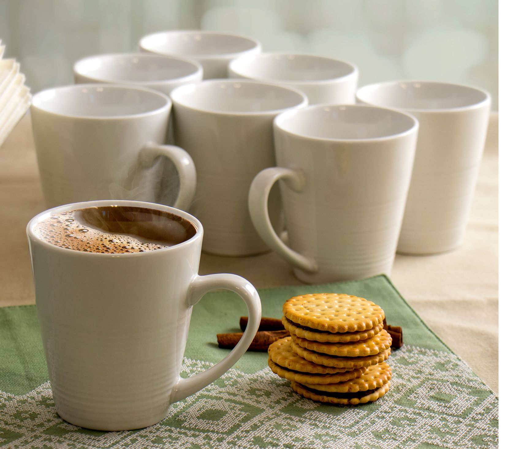 • Includes eight 12-oz mugs