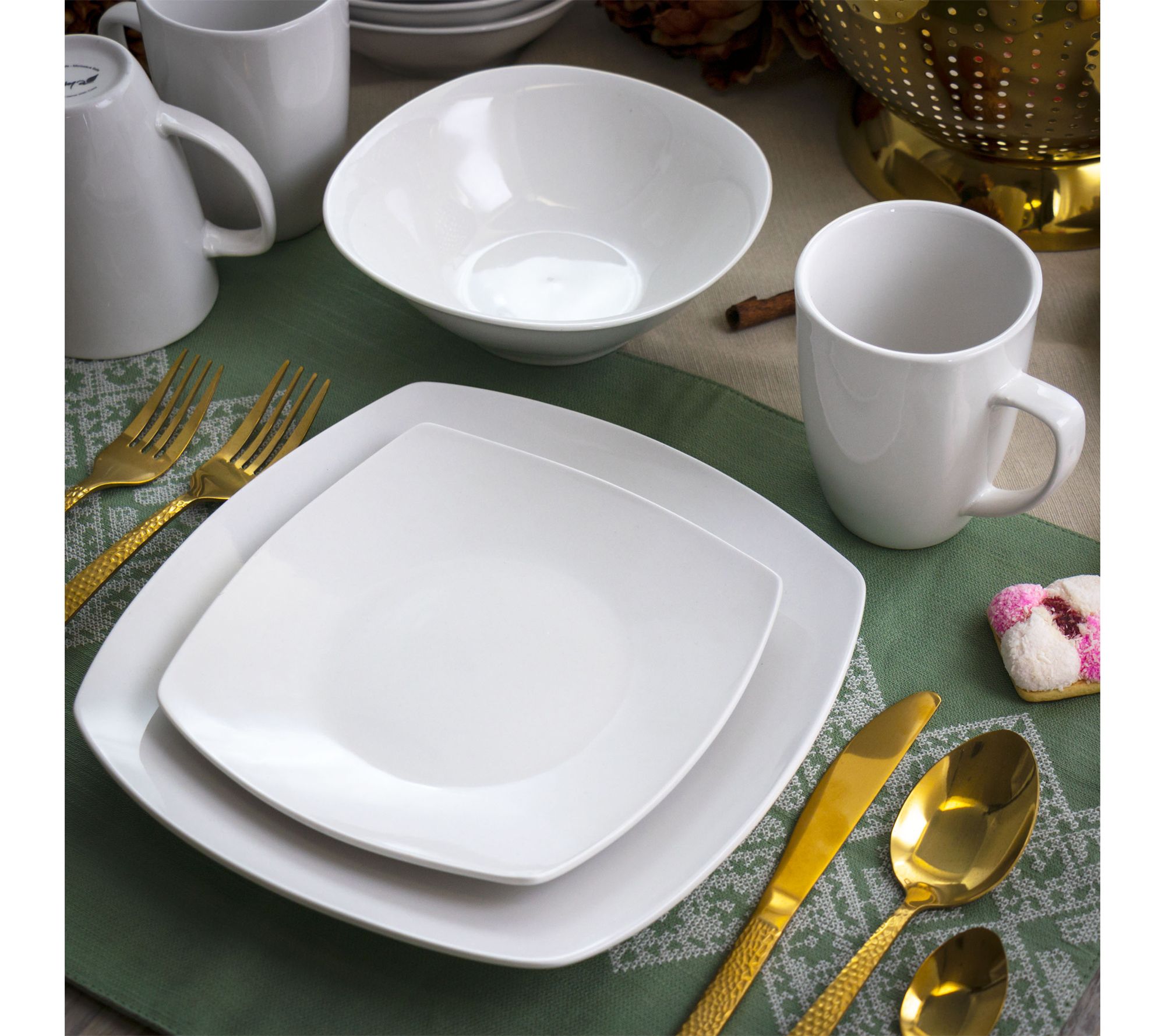 Elama Bishop 16 Piece Soft Square Porcelain Dinnerware Set