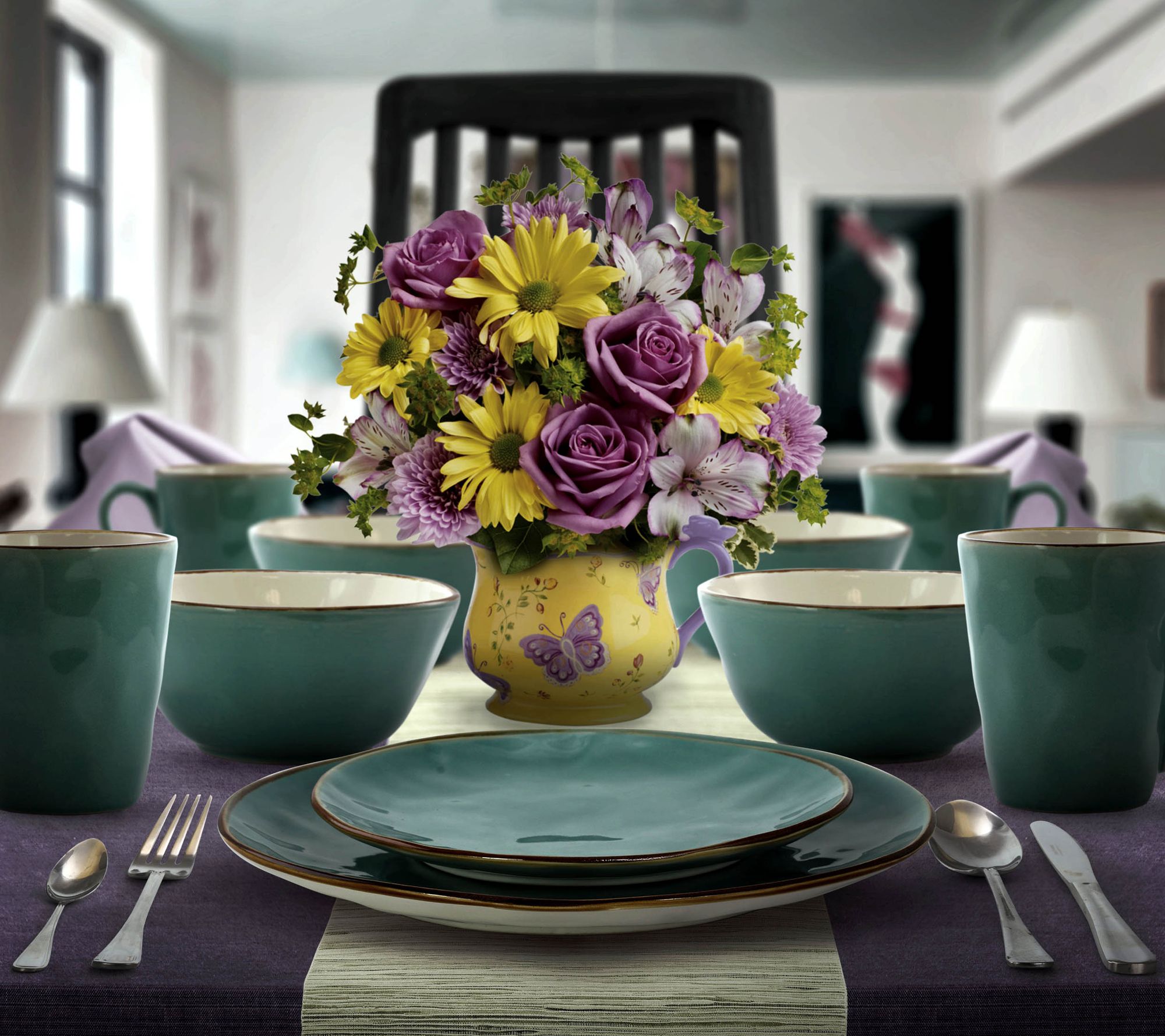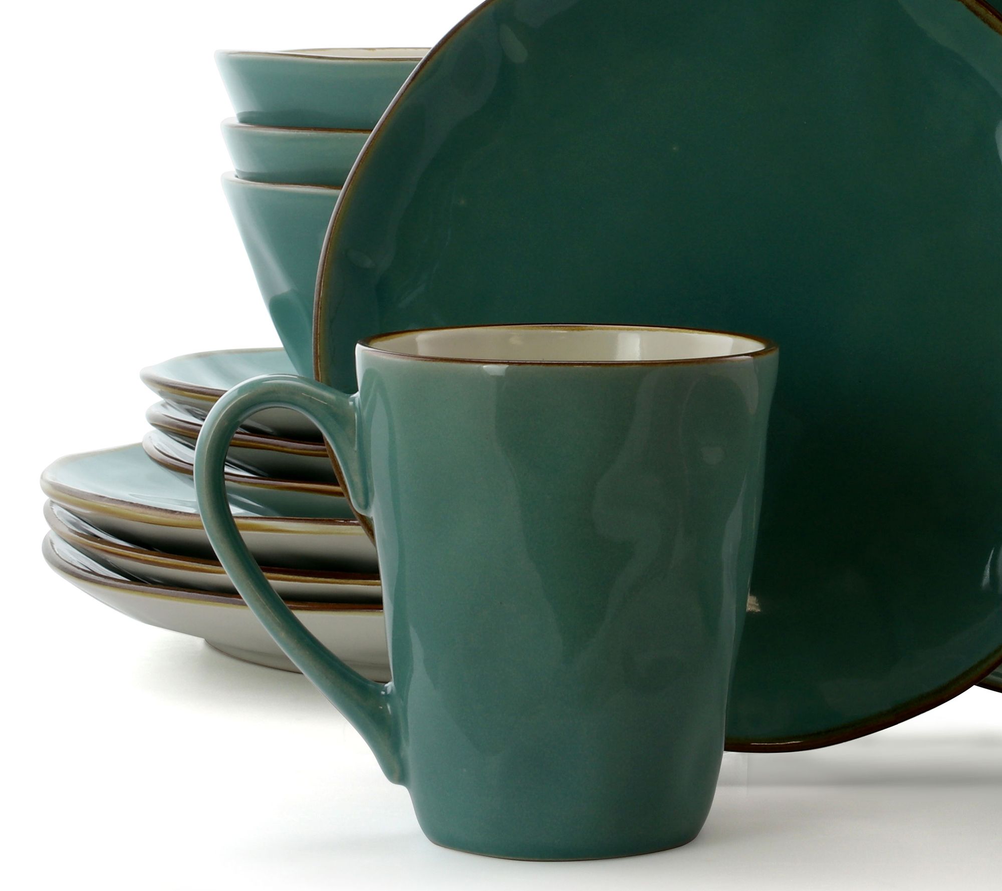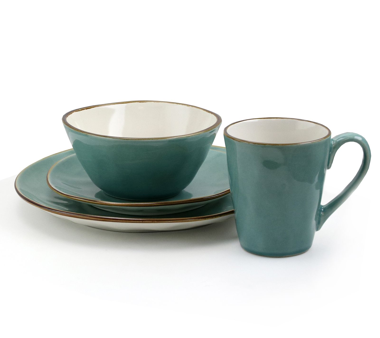• Includes four 11" dinner plates, four 8-1/2" dessert plates, four 6" bowls, and four 12-oz mugs