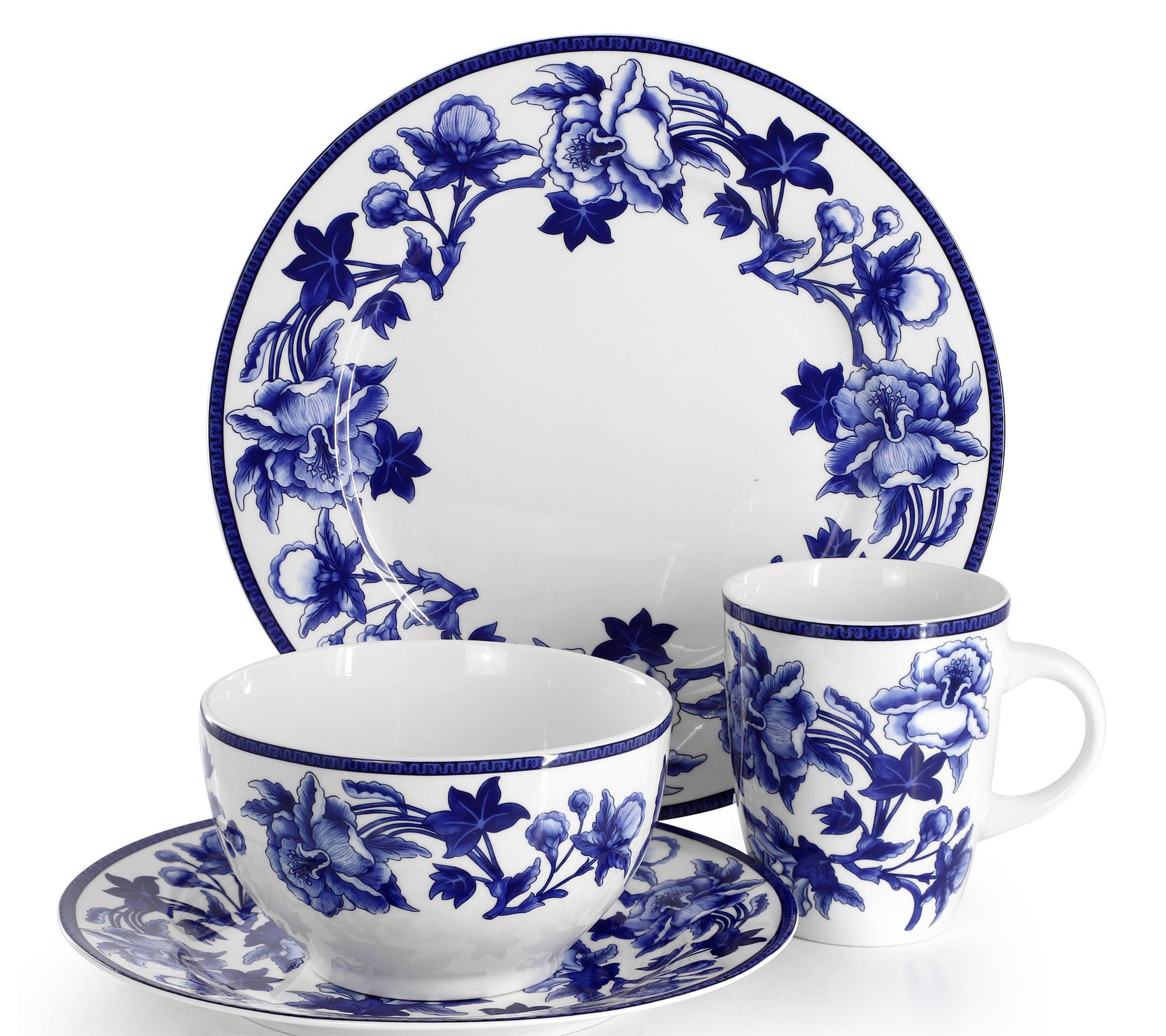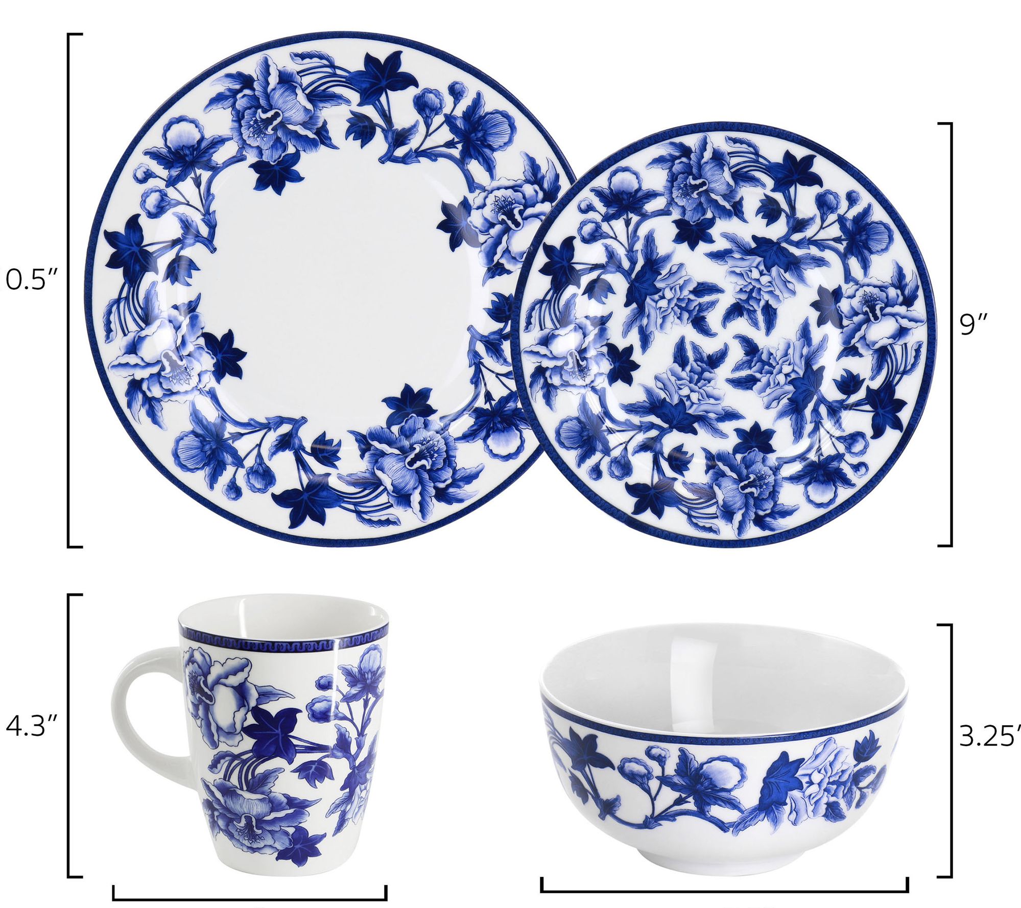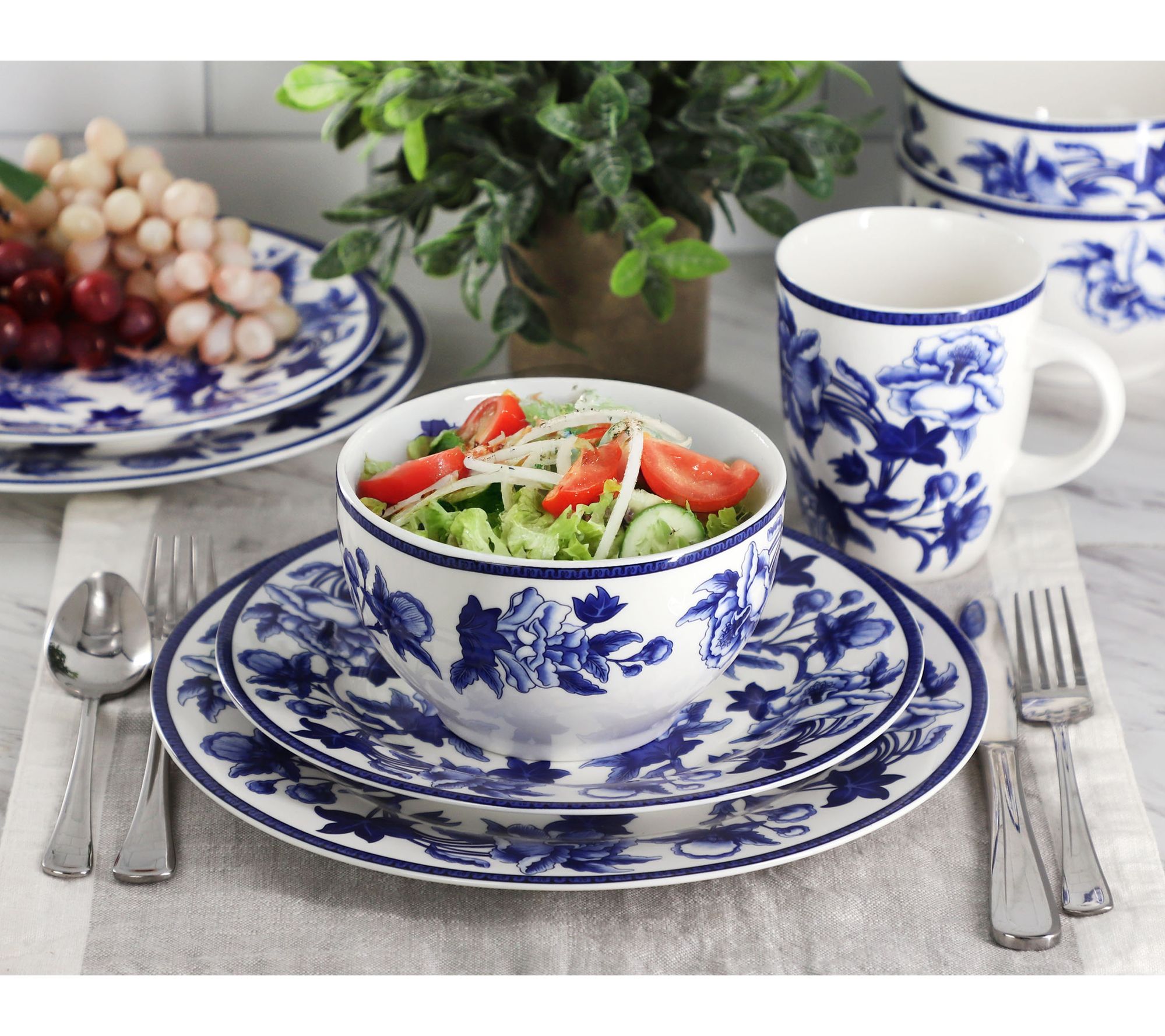 Elama Cattleya Orchid 16 Piece Round PorcelainDinnerware Set