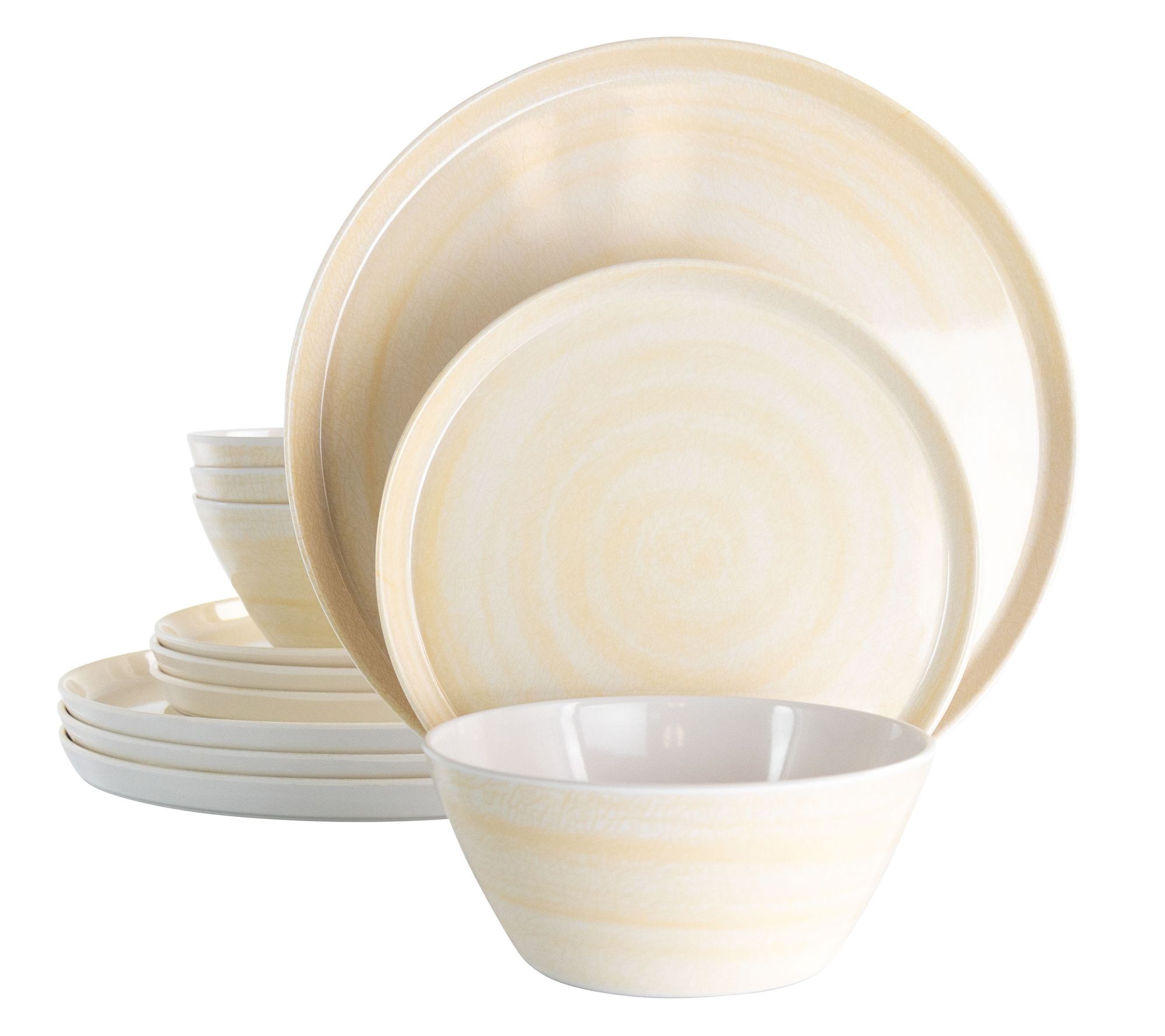 • 12-piece set includes four each: dinner plate, dessert plate, and bowl
