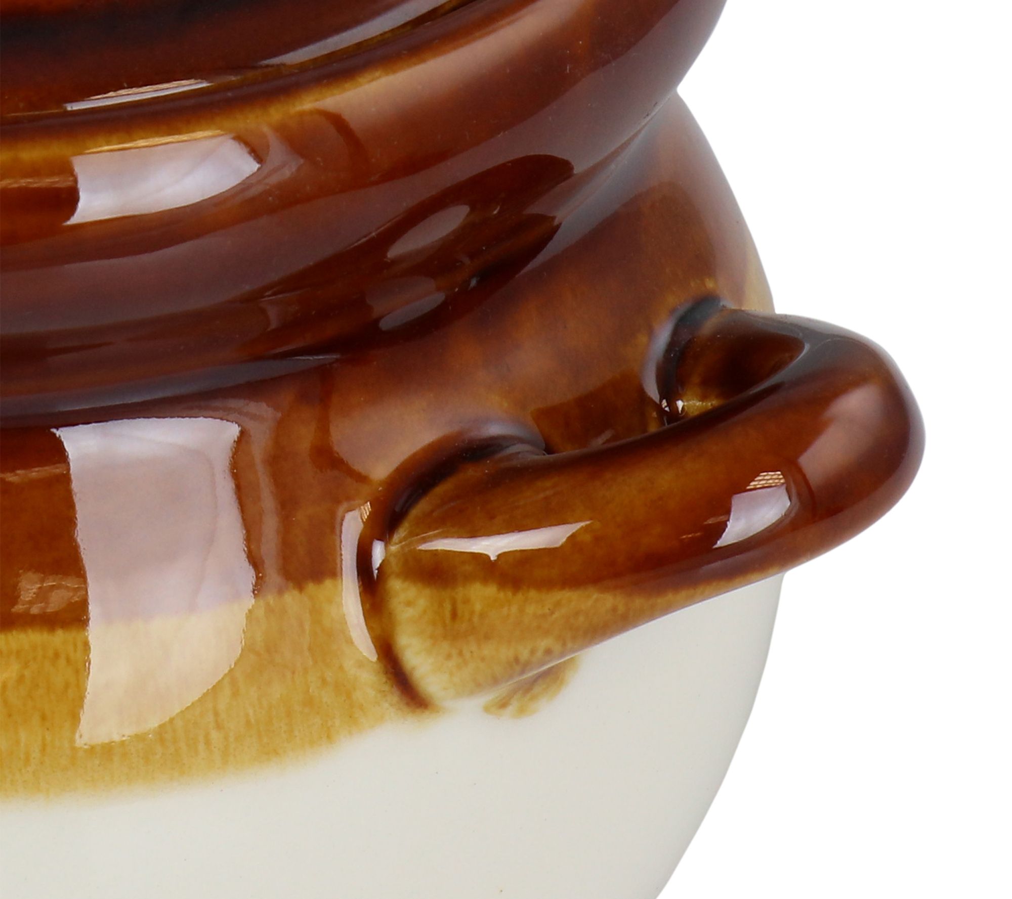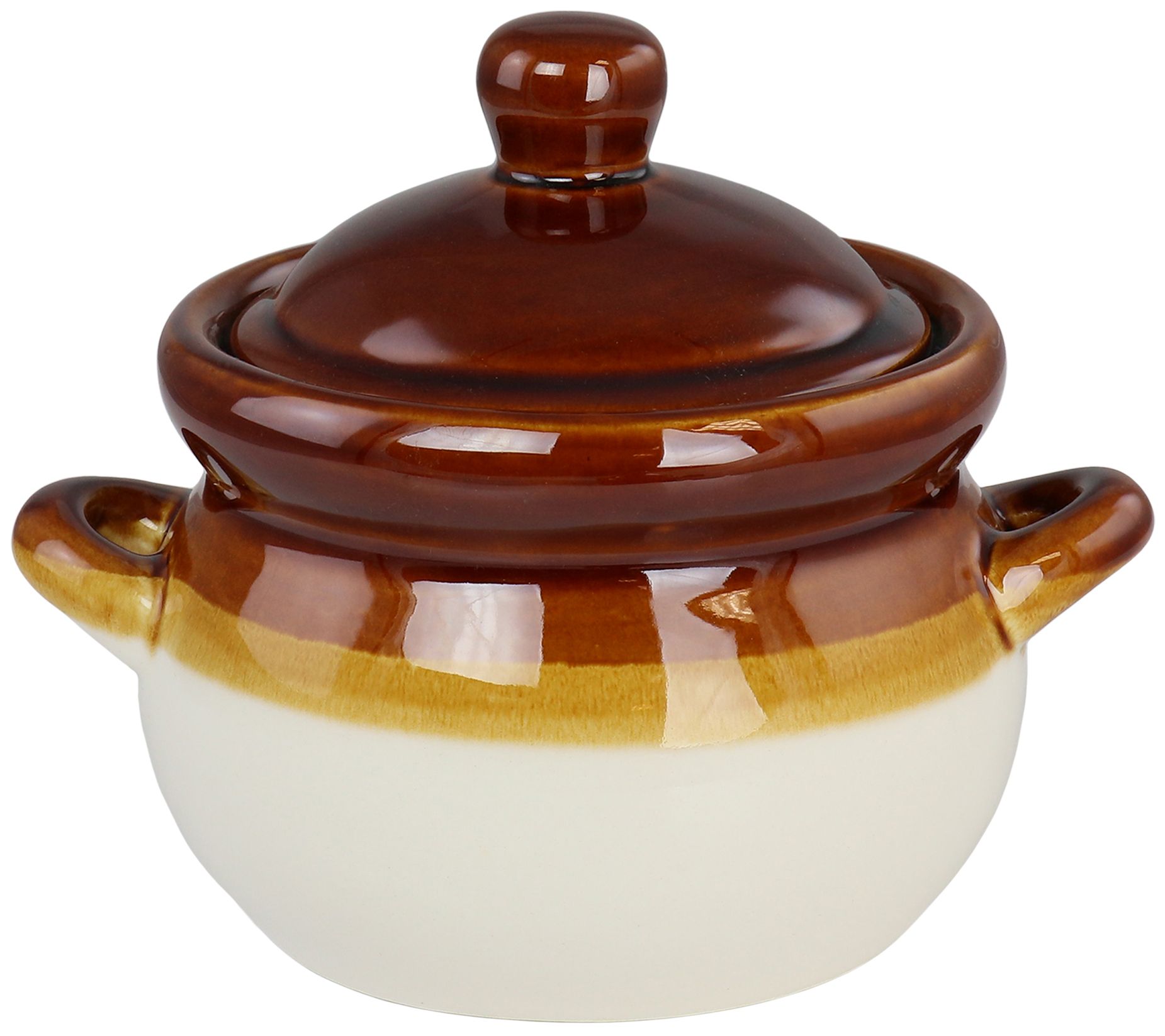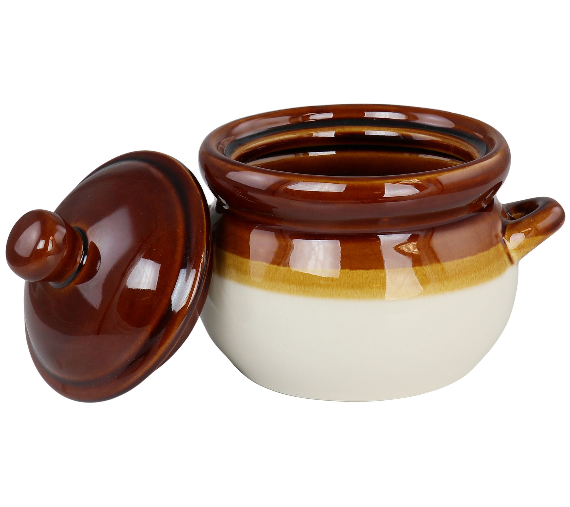 Enjoy everything from a steaming bowl of soup or chili to a bowl of frosty ice cream in these roomy bowls featuring a glossy finish, covered design, and convenient carrying handles. From Elama.