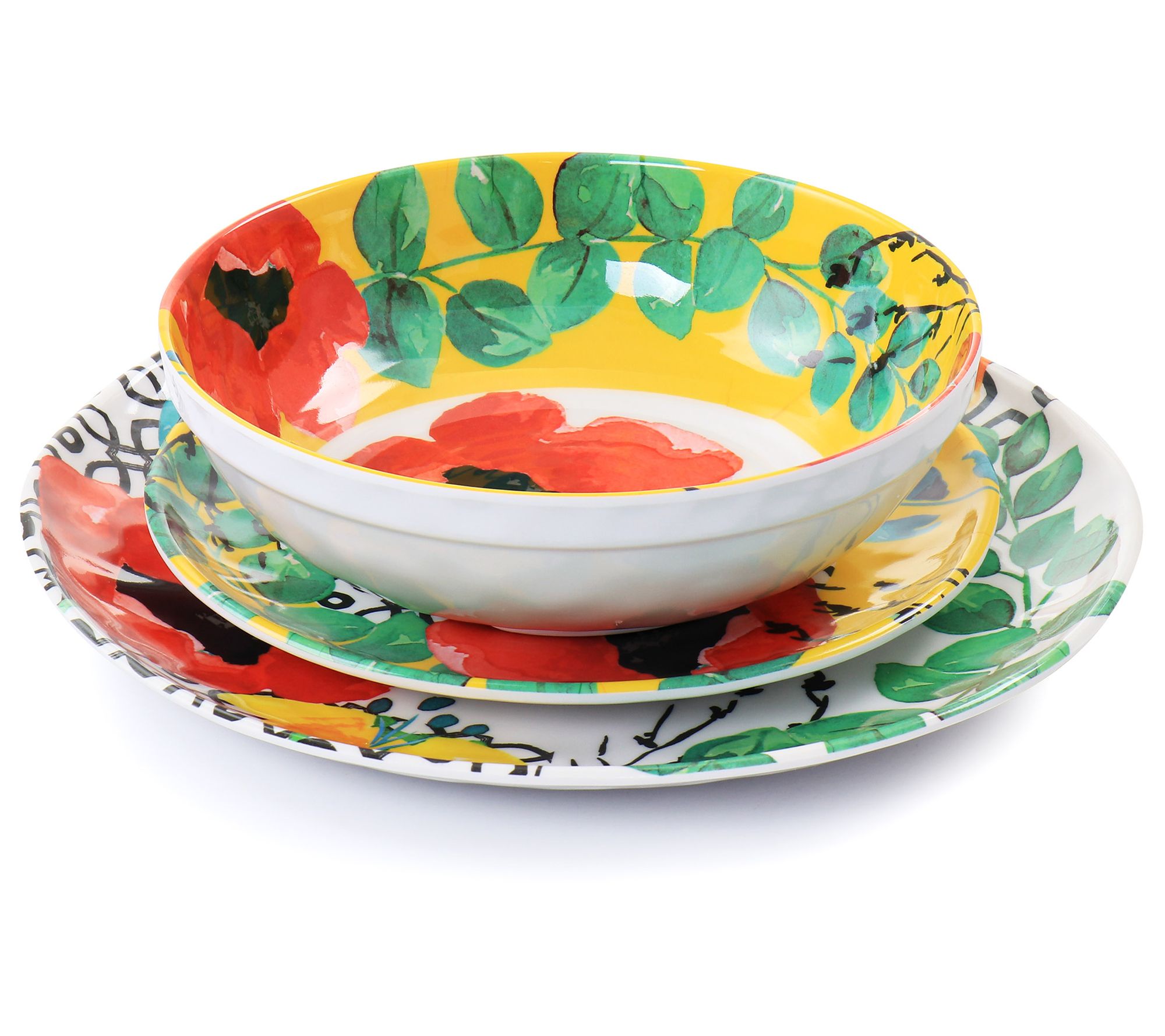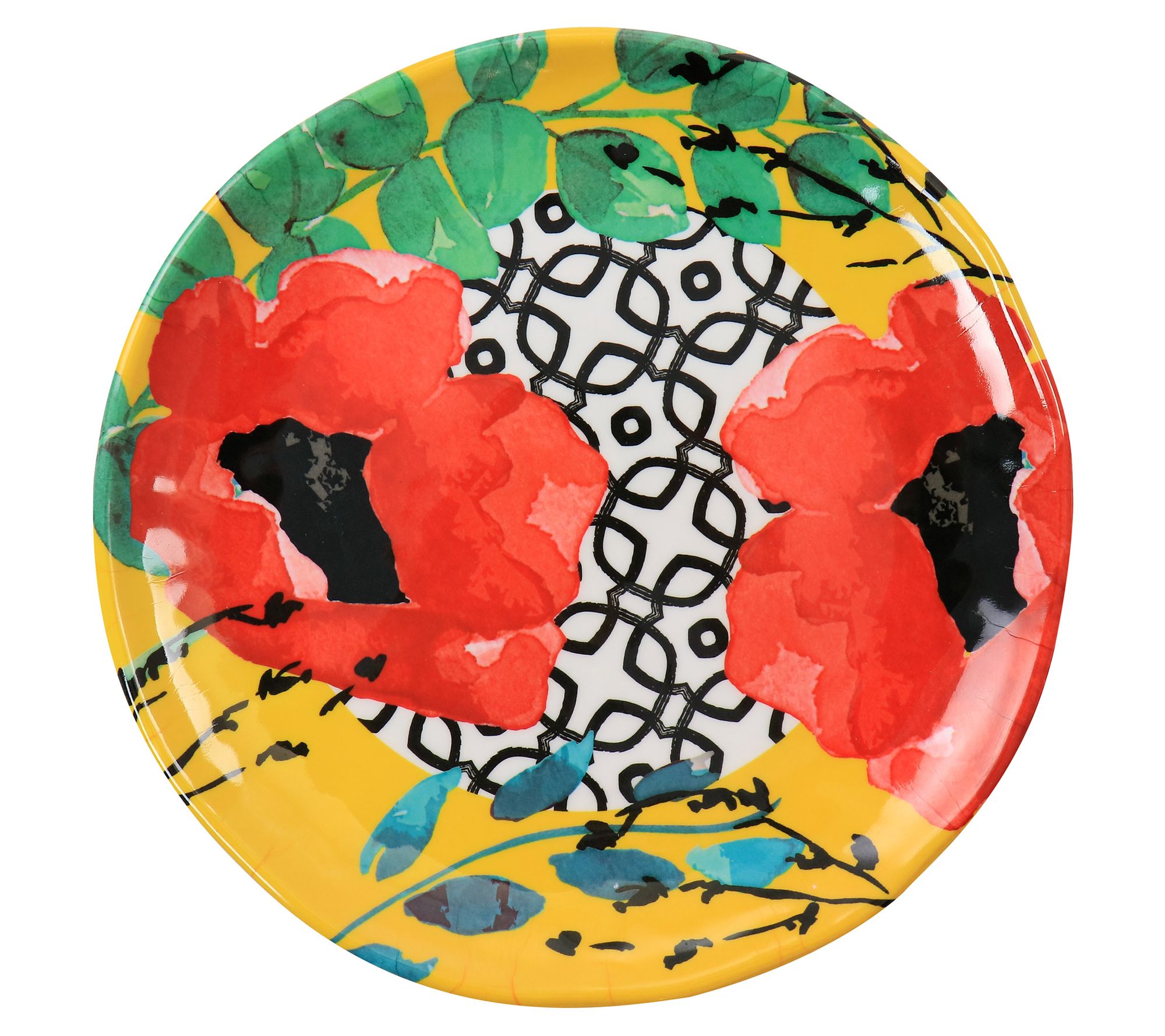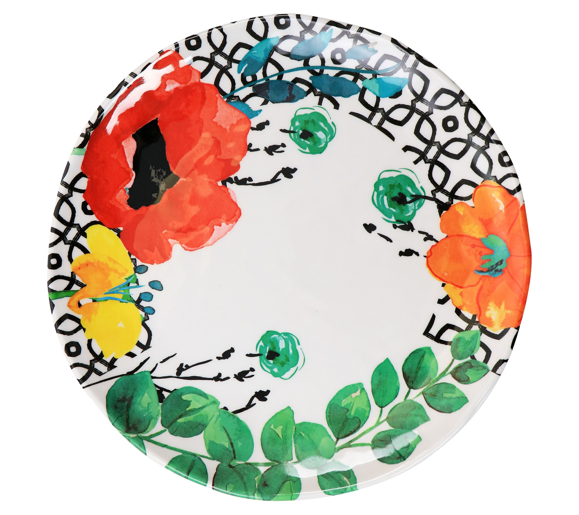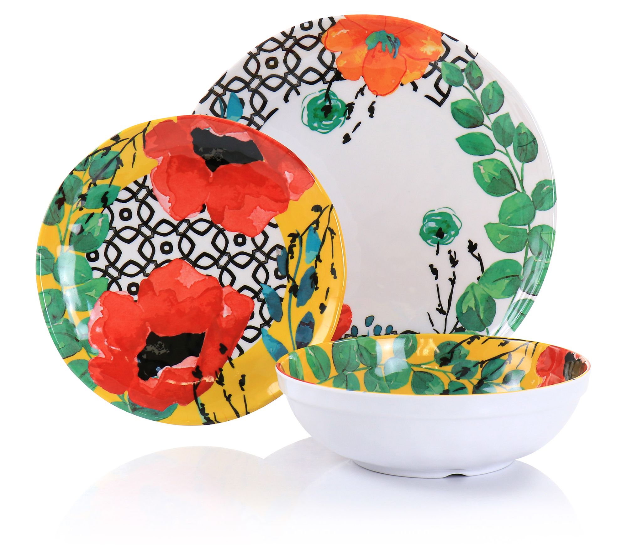 This dinnerware set is perfect for indoor or outdoor use. The brilliant floral design adds upbeat charm to any setting. From Elama.