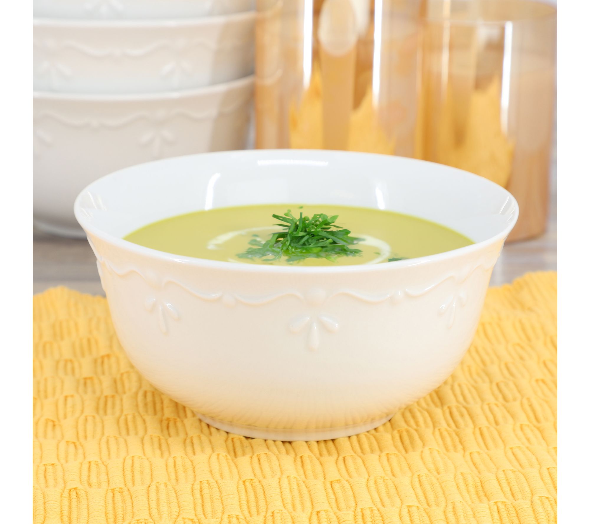 • Sleek, white design pairs with any dinnerware; ideal for serving soups, salads, snacks, or side dishes
