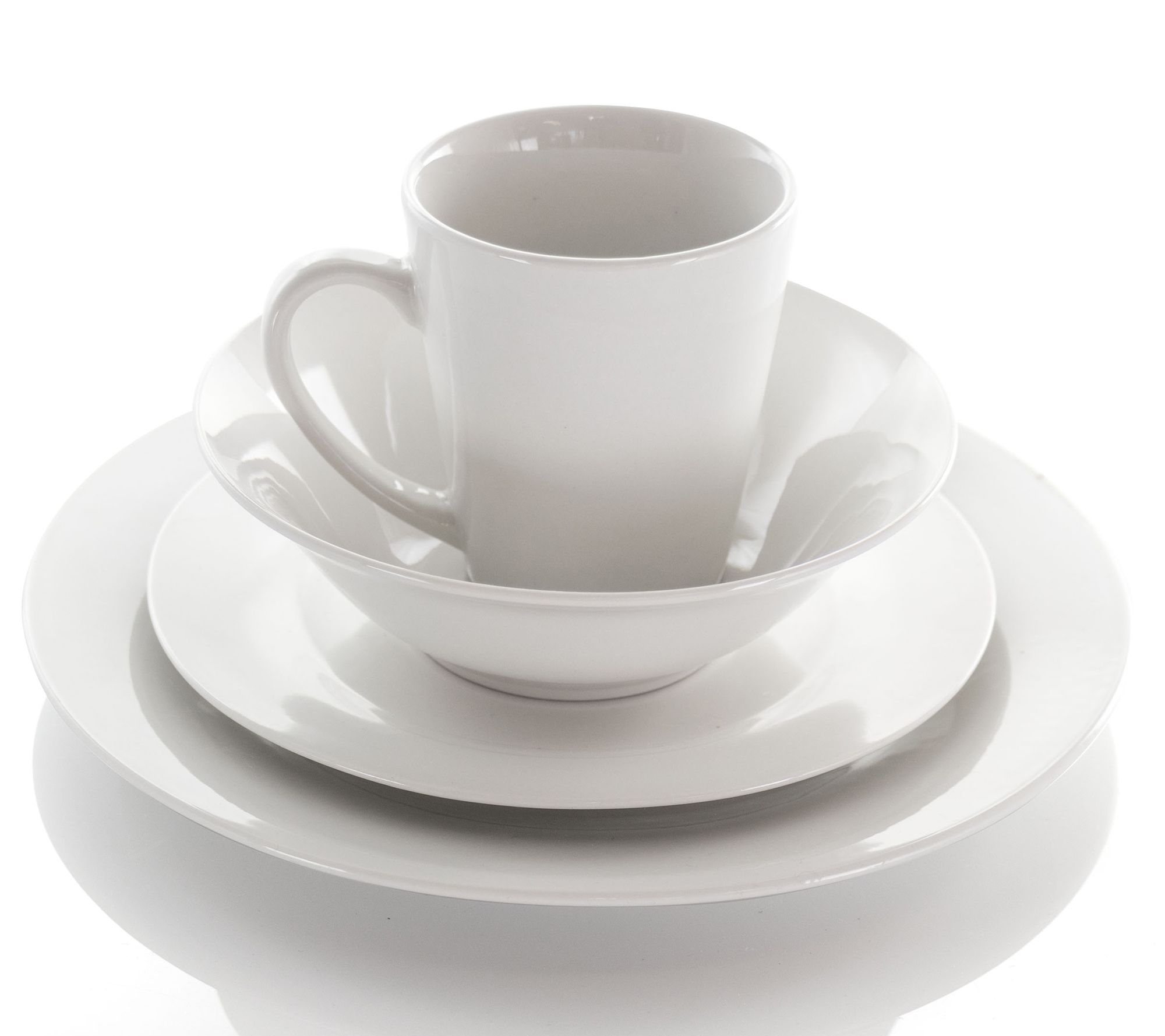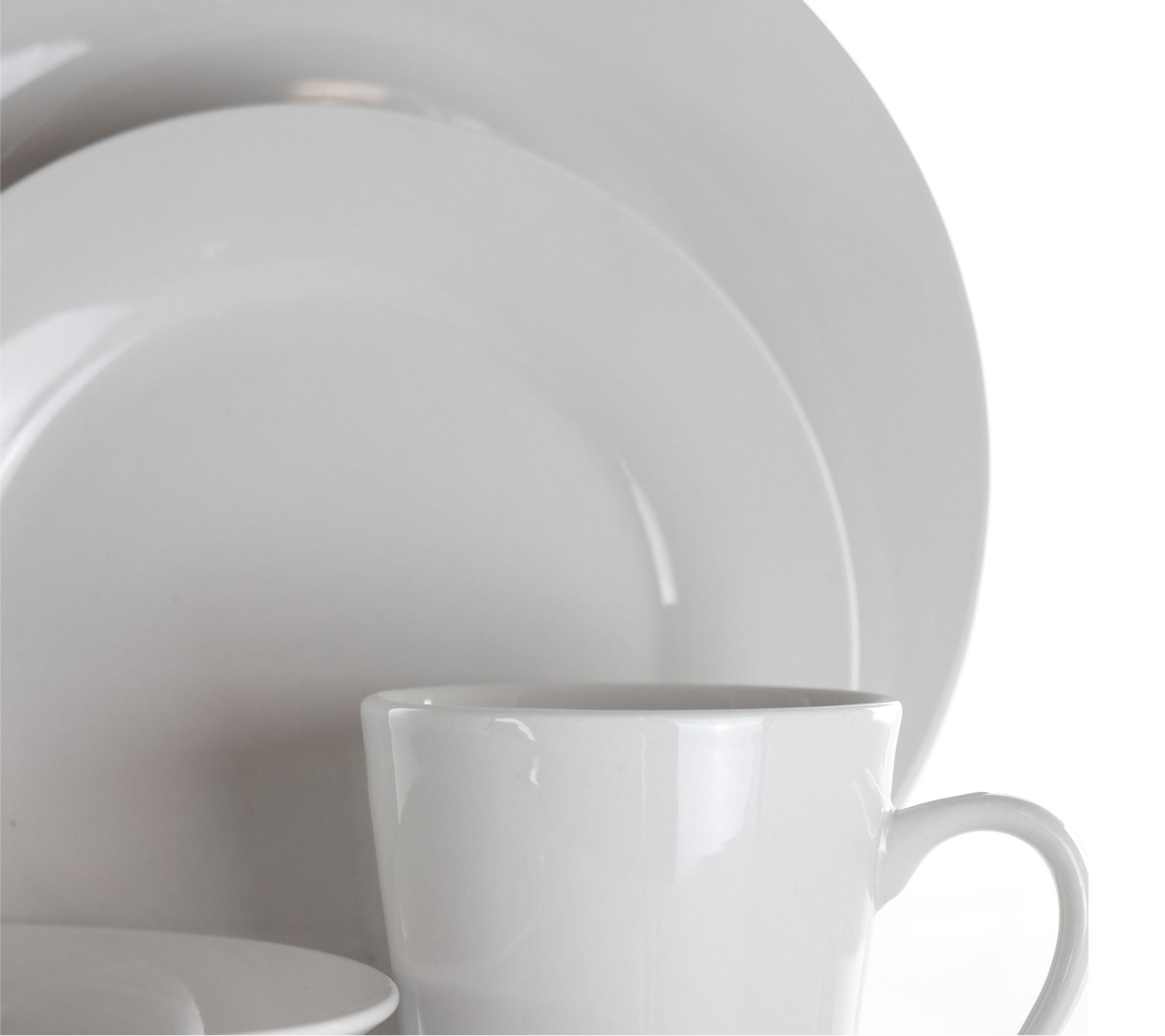 • Includes four 10-1/2" dinner plates, four 8" salad plates, four 7" bowls, and four 10-oz mugs