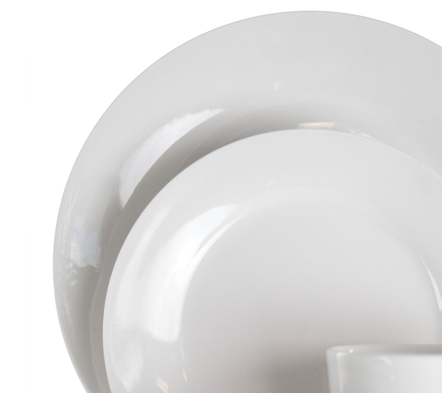 Add a timeless touch of elegance to every meal with this porcelain dinnerware set. From Elama.