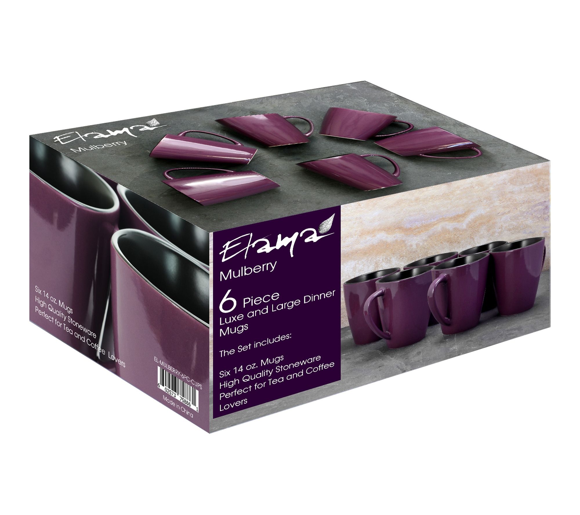Elama Mulberry 14 oz Stoneware Mugs in Purple,Set of 6