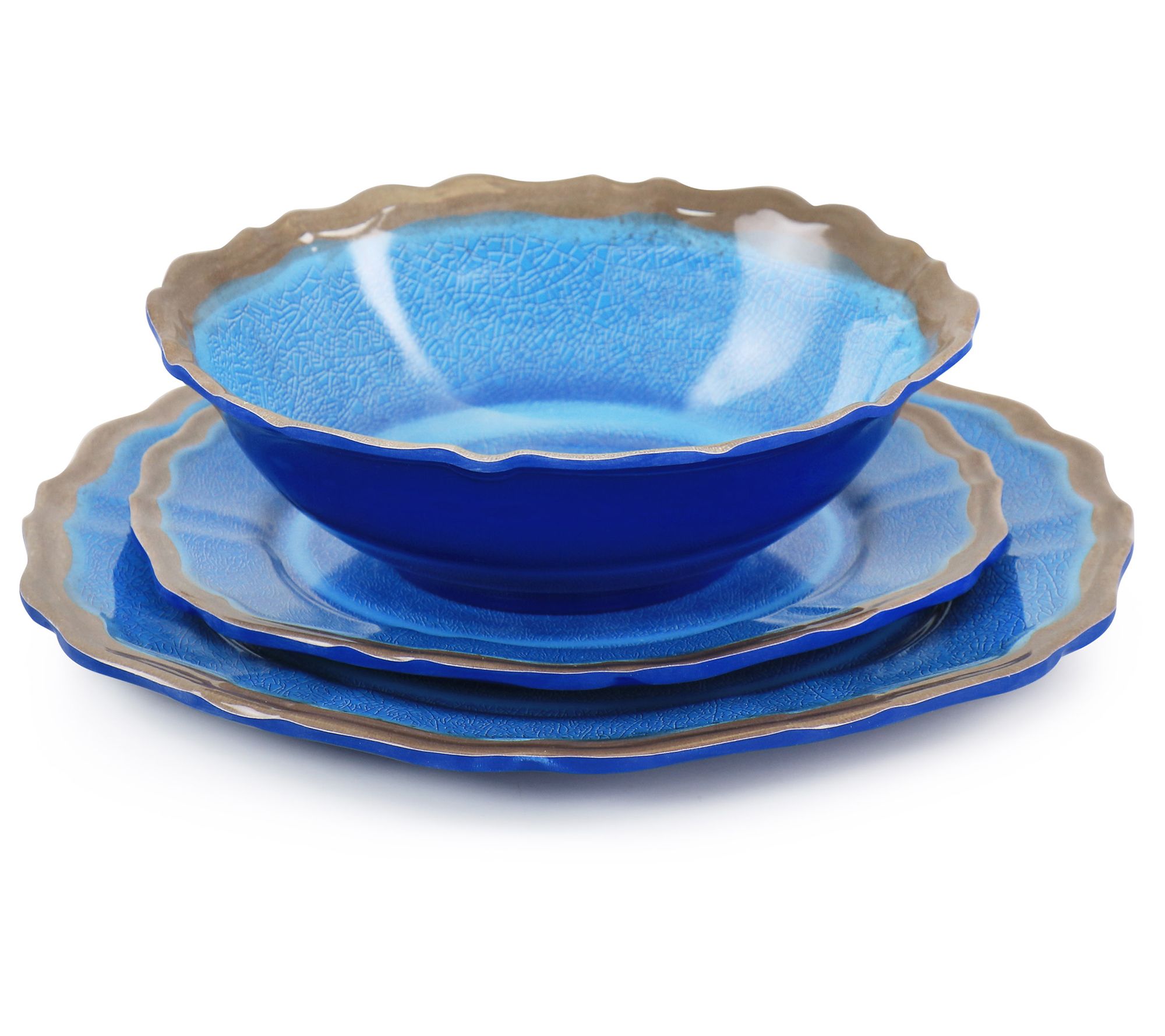 Add a splash of color to your table setting with this lightweight and durable dinnerware set featuring plates and bowls glazed with a glossy crackle coating. From Elama.