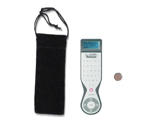 Word up. Don't let unfamiliar words keep you from enjoying new books. With this electronic dictionary bookmark, thousands of definitions are at your fingertips--simply enter the word in question, and the definition appears. The sleek, slim design stows easily in your current reading selection, so you can always have this word finder handy.