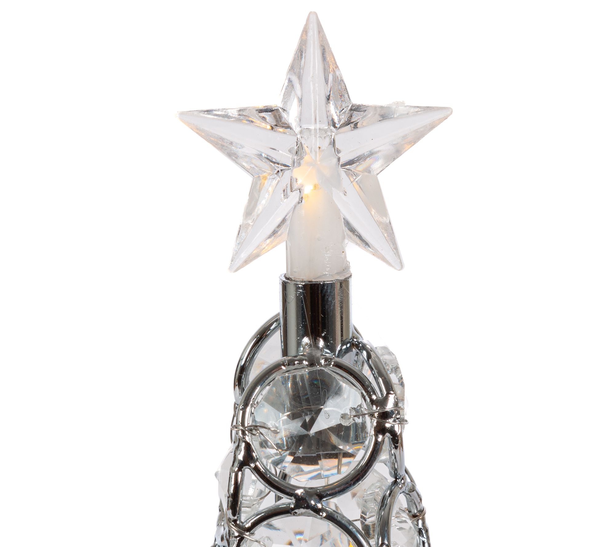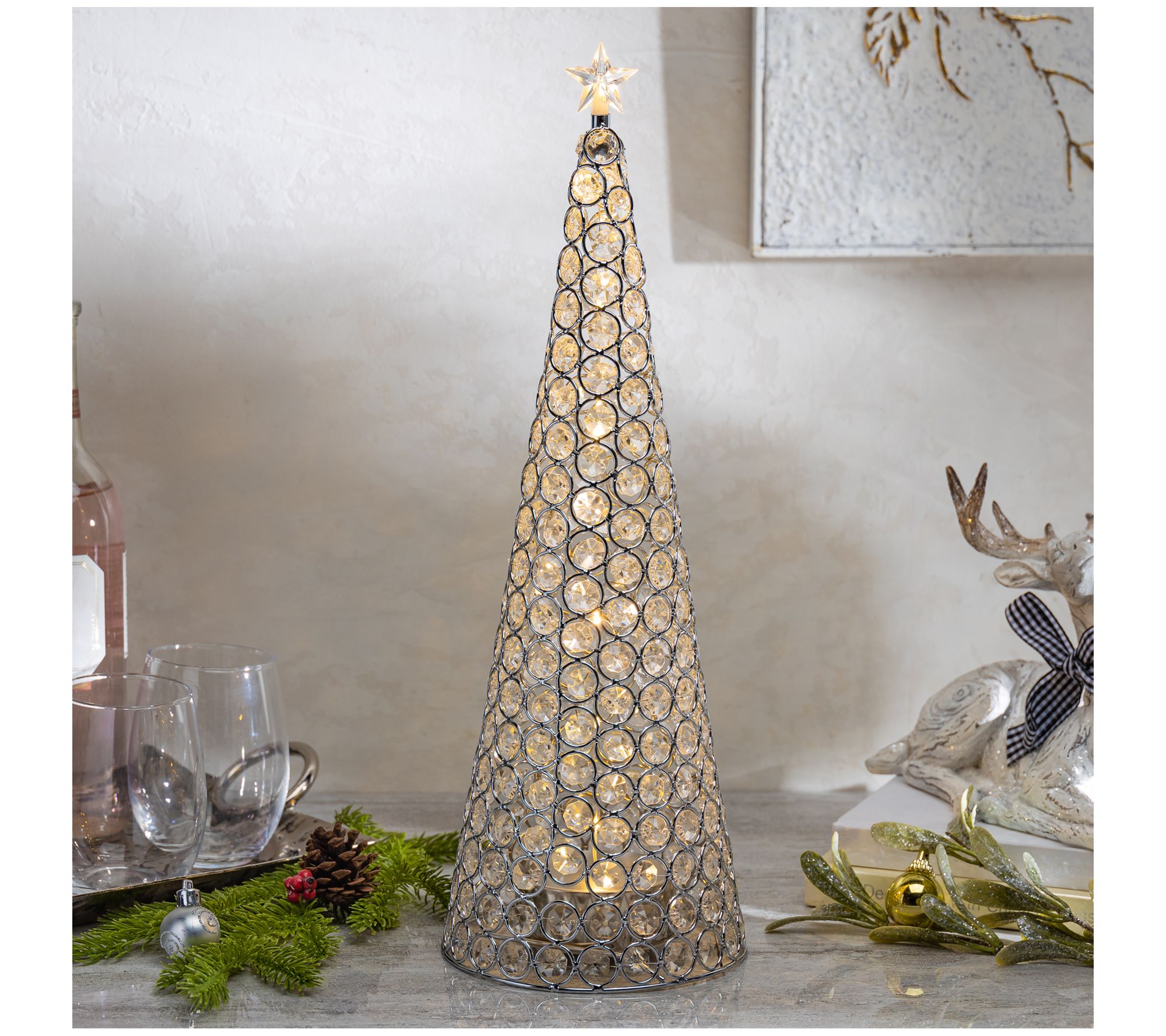 Create a dazzling centerpiece with the ornate jeweled finish of this cone-style topiary topped with a star and glowing warmly from within. From Gerson International.
