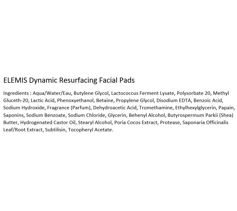 ELEMIS Dynamic Resurfacing Facial Pads deliver a measured dose of patented Tri-Enzyme Technology for smoother-looking skin. Formulated with lactic acid and probiotic ferment complex, they are clinically proven to accelerate skin's natural cell turnover in 28 days.Used twice daily, these textured pads help reduce the look of dark spots, pores, and uneven skin texture. Convenient and easy to use, they physically lift away dead cells and gently exfoliate, leaving the skin looking significantly smoother and brighter.How do I use it: Use every morning and evening after cleansing. Smooth pad, texture side down, over the face in a circular motion.From ELEMIS.Includes: