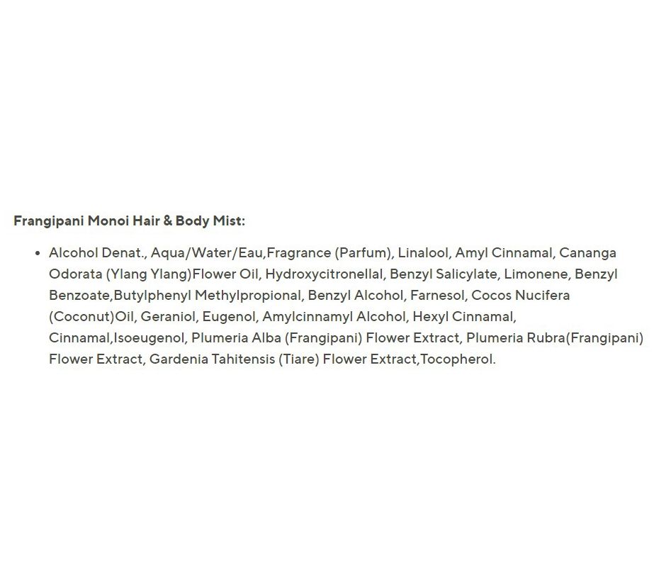 Discover lush fragrance from ELEMIS with this fabulous body mist. This pampering mist is a must-have in your daily routine. Formulated with the rich scent of frangipani, the "flower of the gods", it helps to moisturize skin. This pampering body mist is formulated with coconut oil plus frangipani flower extracts.