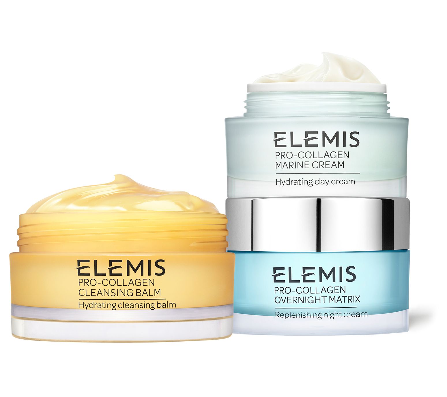 Whether you already love Pro-Collagen or are looking to upgrade your skincare regime, experience this iconic set of three nourishing ELEMIS heroes. This day-to-night set keeps skin nourished with hydration and looking smooth. Renowned for its indulgent transformative balm-to-oil-to-milk texture, Pro-Collagen Cleansing Balm melts away makeup and daily pollutants and impurities for a soft and radiant looking complexion. Pro-Collagen Marine Cream helps temporarily improve the appearance of fine lines and wrinkles for skin that looks smooth and hydrated. Pro-Collagen Night Cream targets the signs of ageing to reveal a hydrated, smoother-looking complexion upon waking.