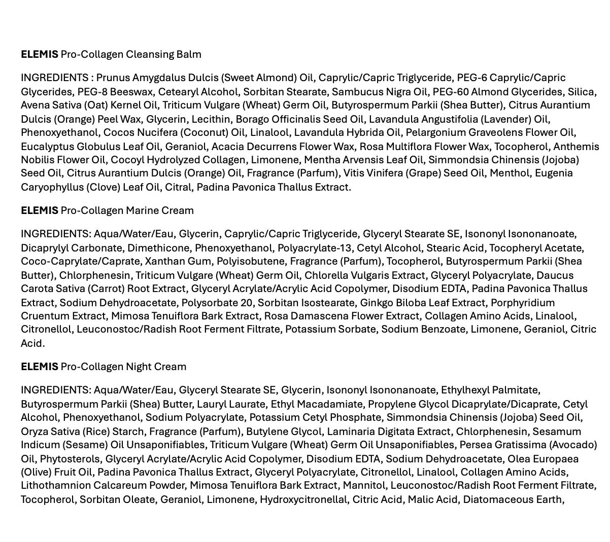 Pick up this ELEMIS Mini Icons Gift Set. Pro-Collagen Cleansing Balm is a cleansing treatment that removes make-up and daily grime. Formulated with Padina Pavonica, elderberry, and starflower oil, the skin feels cleansed, nourished, and softened for a glowing complexion. Pro-Collagen Marine Cream is proven to reduce the appearance of wrinkles, improve hydration, and leave skin feeling firmer and looking more radiant. Formulated with Padina Pavonica, ginkgo biloba, and chlorella, Marine Cream moisturizes the skin and visibly improves the appearance of fine lines, while supporting a feeling of suppleness, firmness, and elasticity. Pro-Collagen Night Cream leaves the skin feeling soft and supple, while reducing the appearance of fine lines and wrinkles. Formulated with Padina Pavonica, laminaria digitata and red algae, plus sesame, and avocado oils, skin looks firmer and more toned upon waking, revealing a renewed and more radiant complexion.How do I use it: Use balm daily in the morning and evening as a cleanser or weekly as a nourishing facial mask. Warm an almond-sized amount between palms and then massage the balm over face, neck, and decollete with light circular massage movements. The balm will melt into a cleansing oil. Moisten fingertips and continue to massage to emulsify the oil into a hydrating milk. Remove with a warm, damp cleansing cloth. To use as a nourishing facial mask, warm an almond-sized amount between palms and then massage the balm over face, neck, and decollete with light circular massage movements. Leave the balm on the face for 10 minutes before removing with a warm wash cloth.Use creams every morning or evening after cleansing. Warm a pea-sized amount between palms. Gently smooth over face, neck, and decollete in upward strokes.From ELEMIS.Includes:
