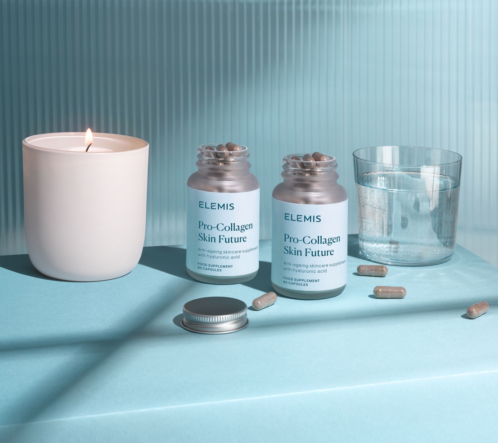 Help combat the visible signs of aging with ELEMIS Pro-Collagen Skin Future Supplements. In a visual assessment by expert graders after eight weeks, subjects showed a measured improvement in skin plumping, luminosity, firmness, elasticity, smoothness, periorbital dark circles, lines, and wrinkles.