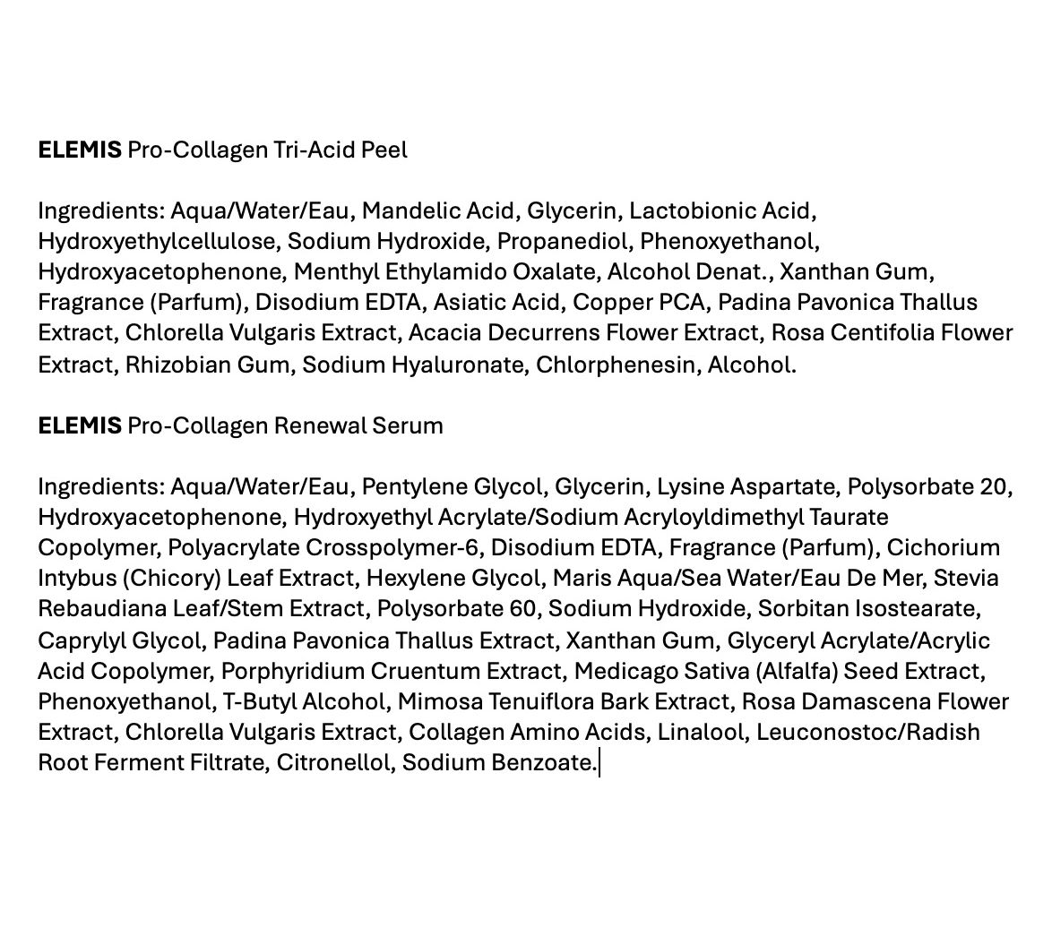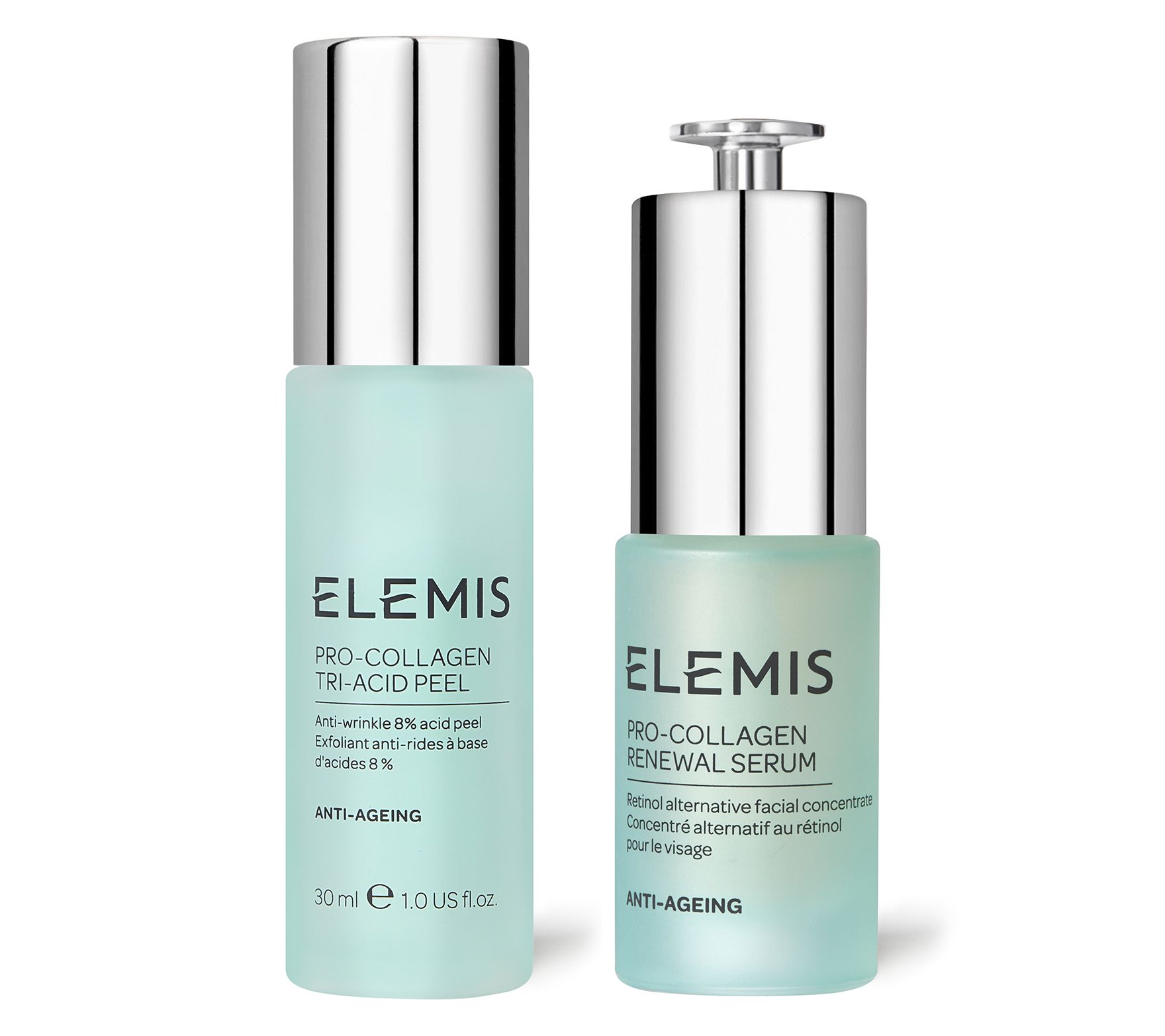 Reveal radiant, youthful-looking skin with this pairing from ELEMIS. Pro-Collagen Renewal Serum targets the appearance of fine lines while Pro-Collagen Tri-Acid Peel helps temporarily to brightens with a blend of exfoliating acids. Together, they deliver visibly smoother, and more luminous-looking skin.