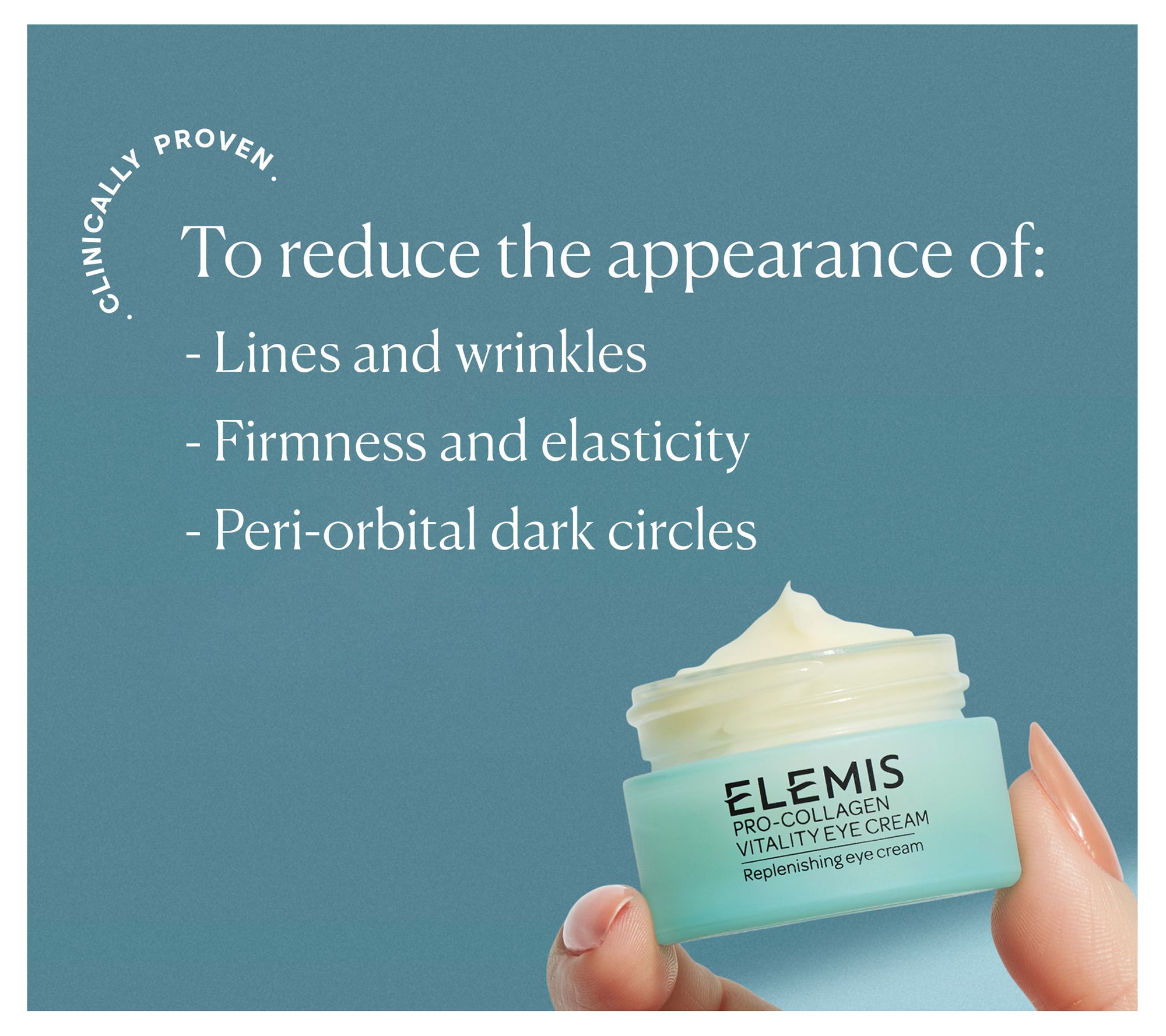 ELEMIS Pro-Collagen Vitality Eye is an ultra-nourishing eye cream that helps improve the look of lines, wrinkles, firmness, and brightness for a more wide-awake look. It contains a combination of two white flowers -- hawthorn and jasmine -- as well as artemisia capillaris and elderflower extract and it's formulated with ELEMIS' hero ingredient Padina Pavonica, a brown micro algae.