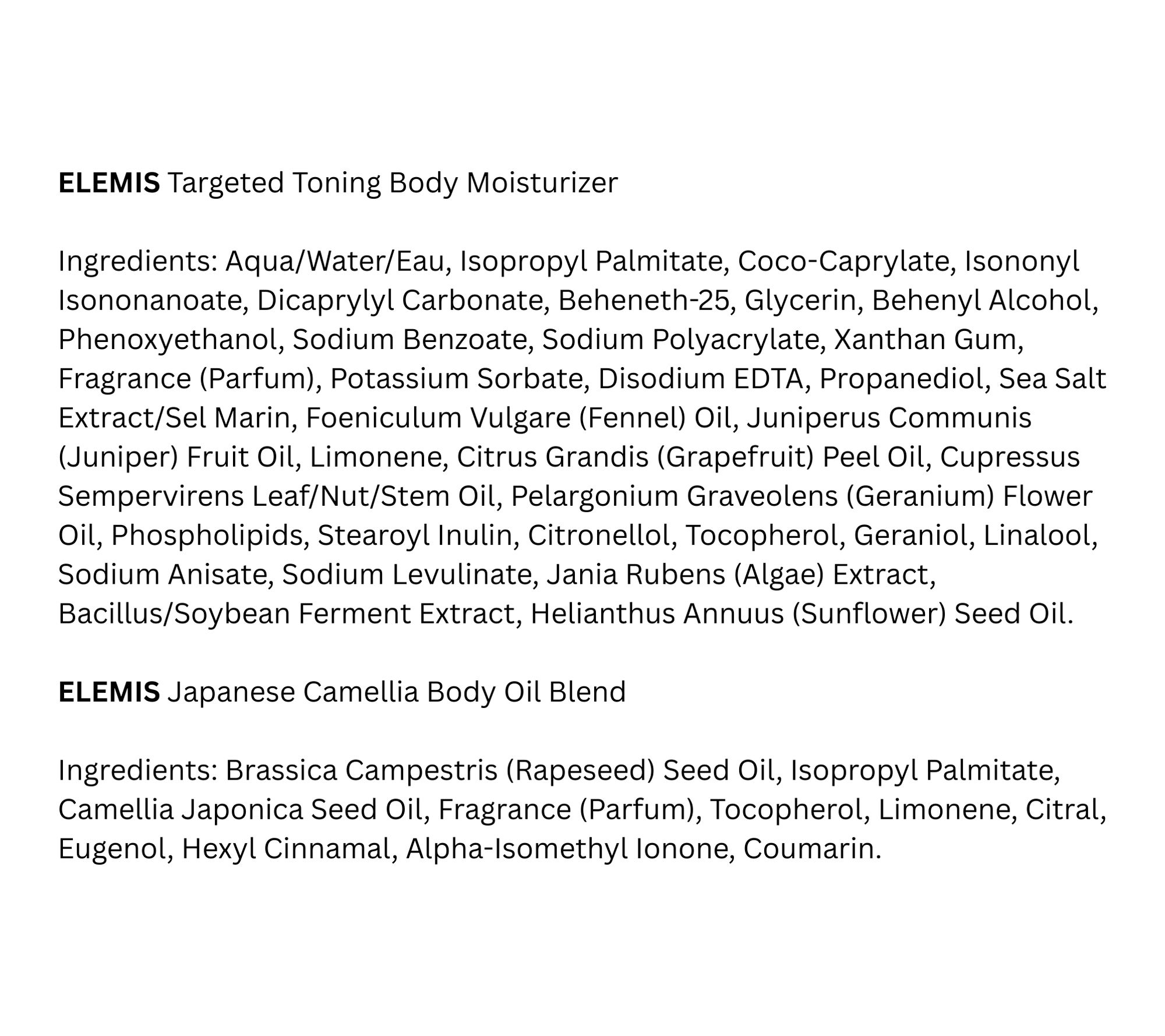 Transform your body-care routine into a luxurious spa-like ritual with this two-piece set from ELEMIS. Formulated with camellia oil, Japanese Camellia Body Oil Blend helps to moisturize and nourish the look of skin. The lightweight yet indulgent formula hydrates the skin to improve its appearance and leave it appearing irresistibly soft and moisturized. This versatile formula is ideal for use and can also be used on nails and cuticles.