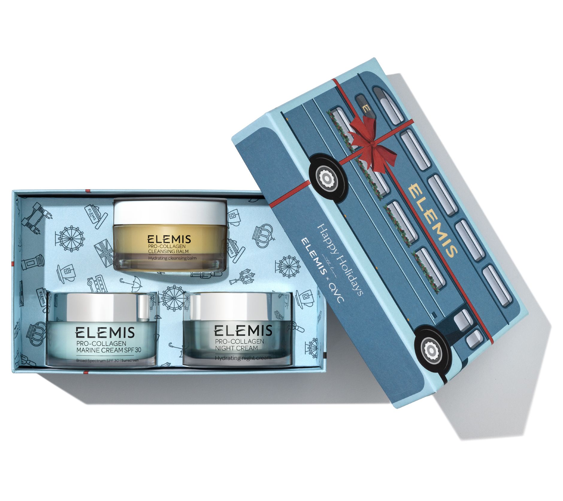 All dressed up in an iconic London bus gift box, this ELEMIS Pro-Collagen three-piece set of multitasking timesavers provides the ultimate day-to-night anti-aging beauty experience.