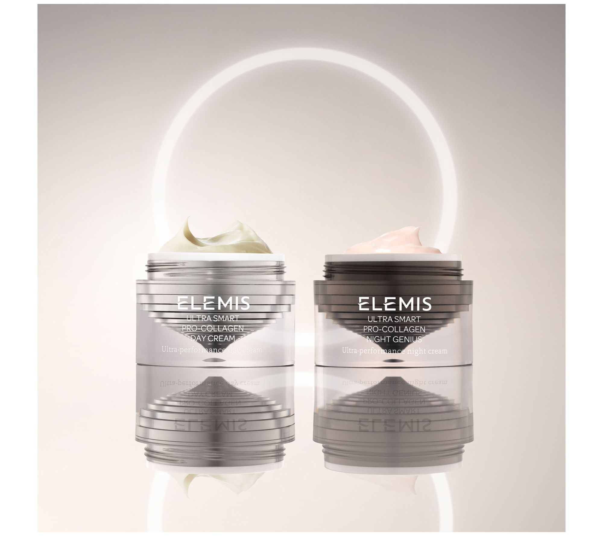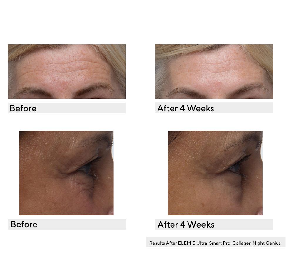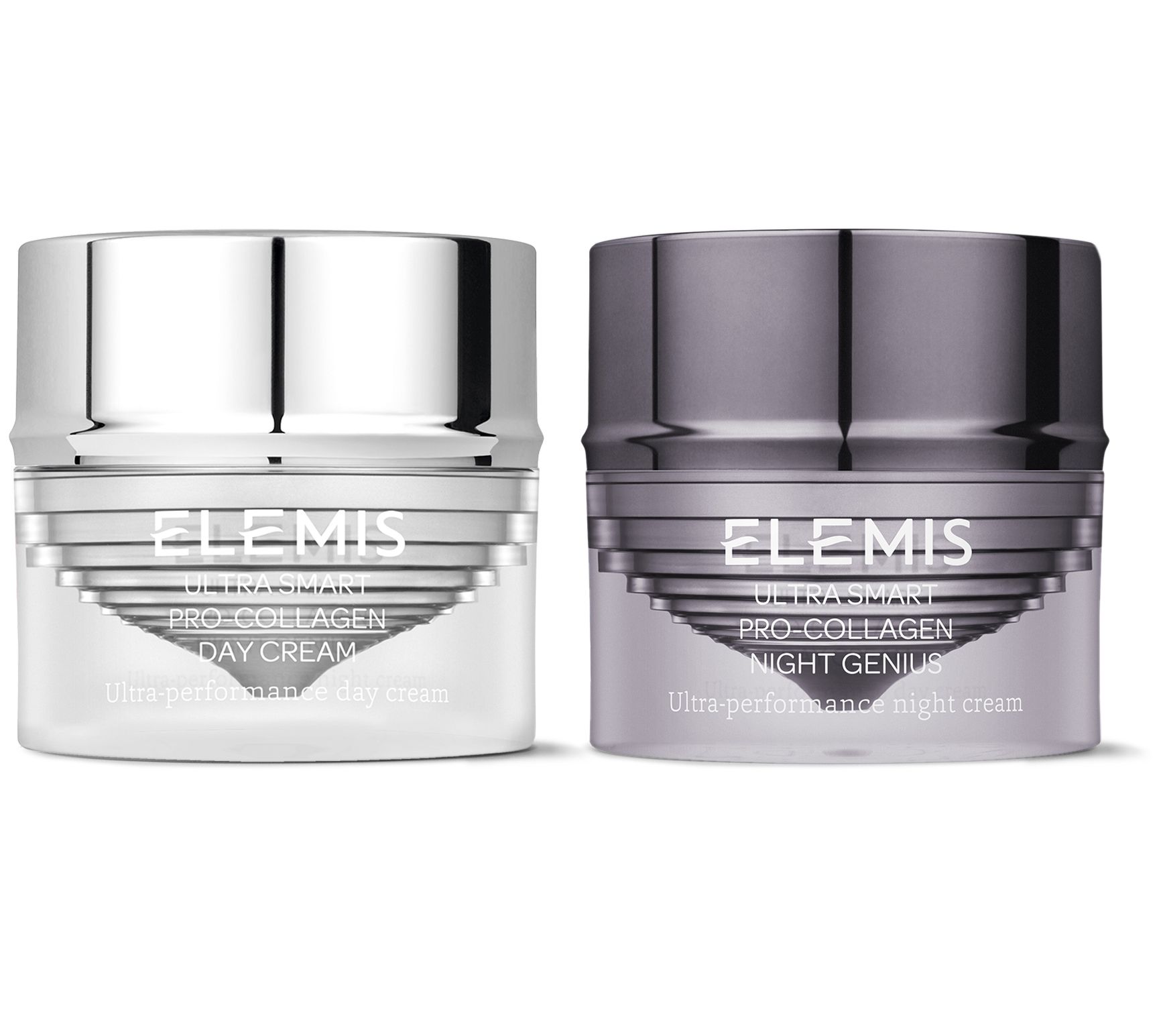 Welcome the age of intelligent skincare with this AM/PM ELEMIS set. Ultra-Smart Pro-Collagen Day Cream is a moisturizer that works with your skin. This velvety moisturizer delivers moisture up to 24 hours, while targeting the visible signs of aging, for skin that looks more radiant, rejuvenated, and visibly transformed. Ultra-Smart Pro-Collagen Night Genius is a revolutionary anti-wrinkle moisturizer that delivers powerful overnight hydration, leaving skin feeling smooth and hydrated. Like a comforting layer, the cutting-edge nighttime moisturizer envelops skin in a restorative veil of 24-hour hydration.