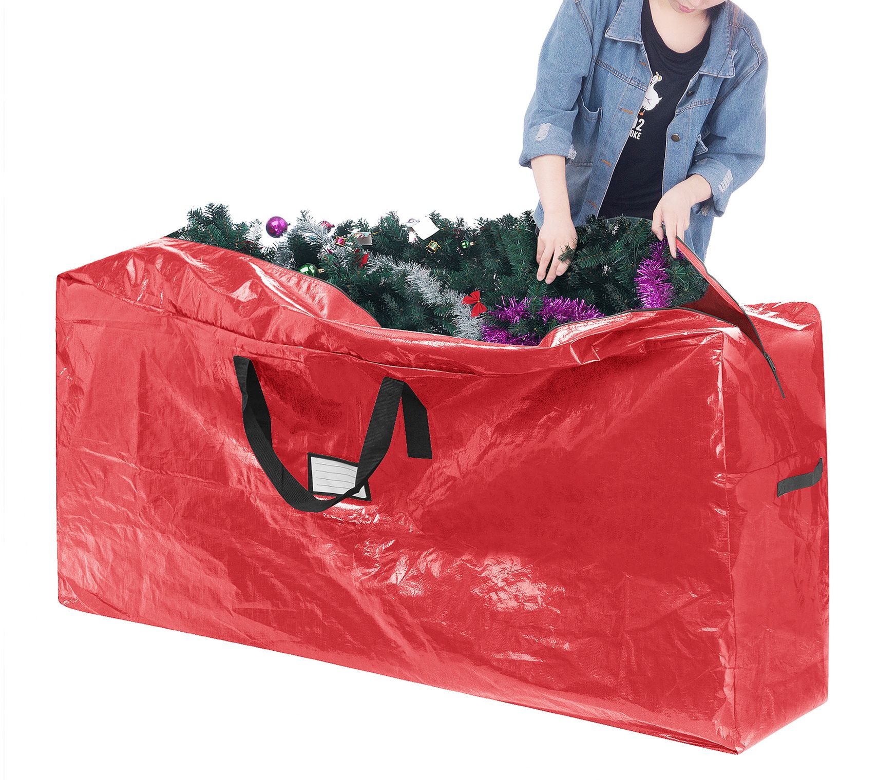 Quit struggling with that same tree box year after year and instead, store your tree in this 9' tree bag. Topped with sturdy carry handles, it holds your tree and accessories securely. From Elf Stor.