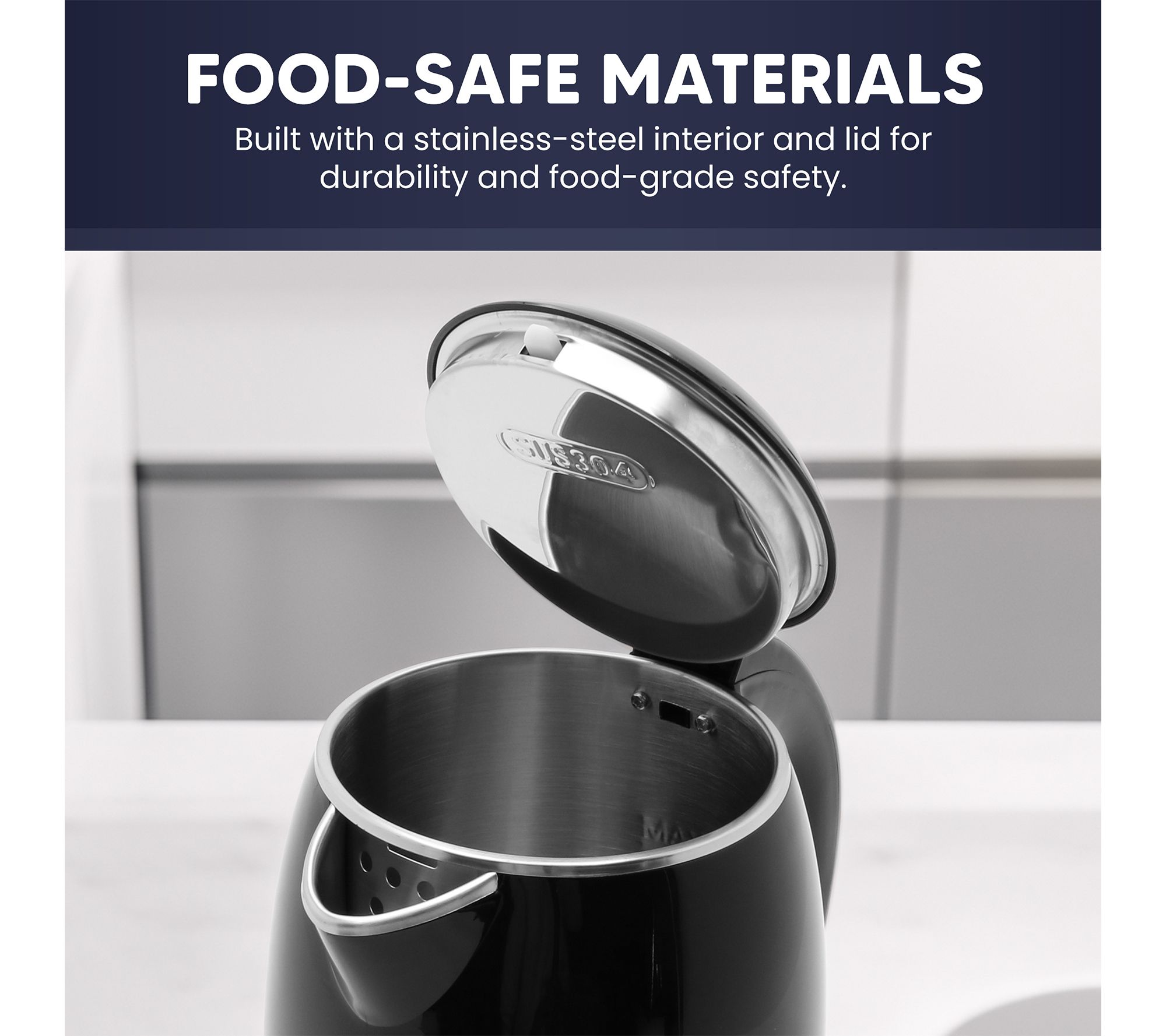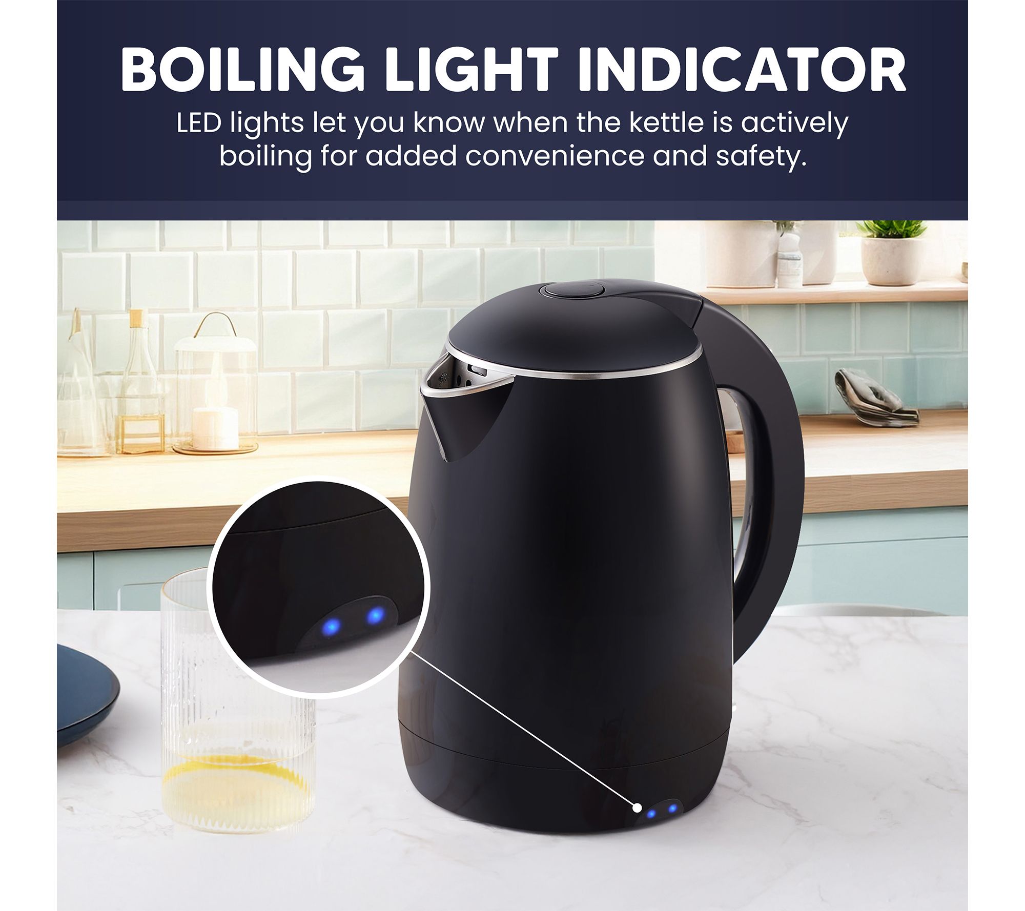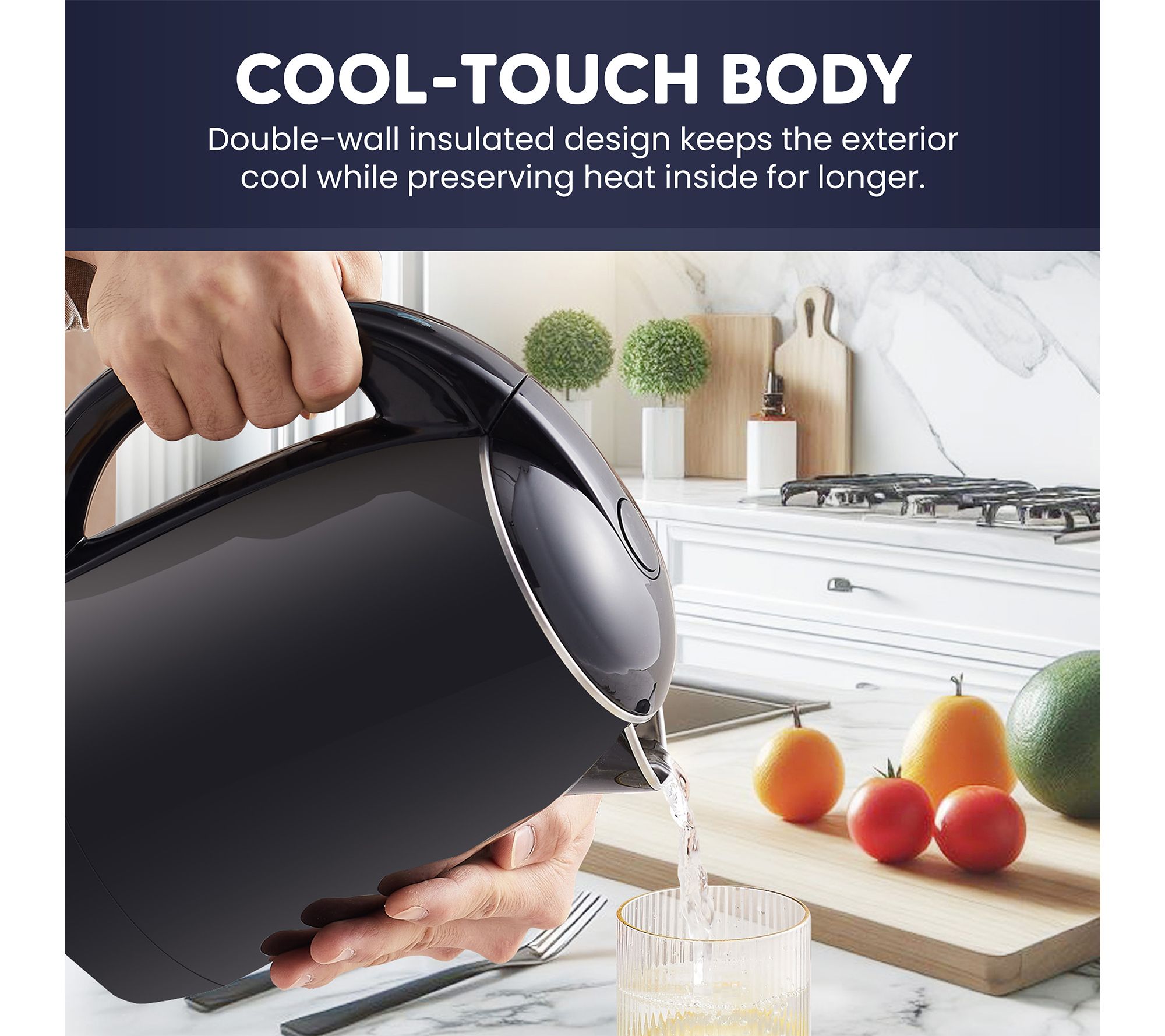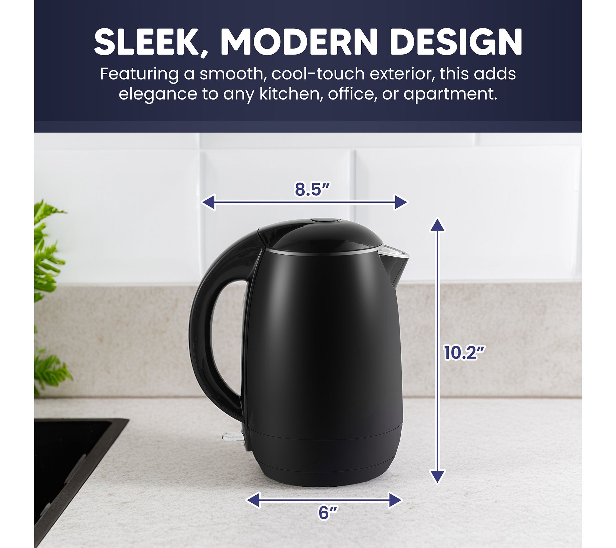 Morning tea, instant oatmeal, or a cozy evening cocoa -- hot water is ready in no time with this electric kettle. The double-wall cool-touch exterior helps keep hands safe, while the stainless steel interior lets you enjoy every pour. Quick to boil and simple to clean, it's a countertop essential for busy kitchens and relaxed moments alike. From Elite Cuisine.