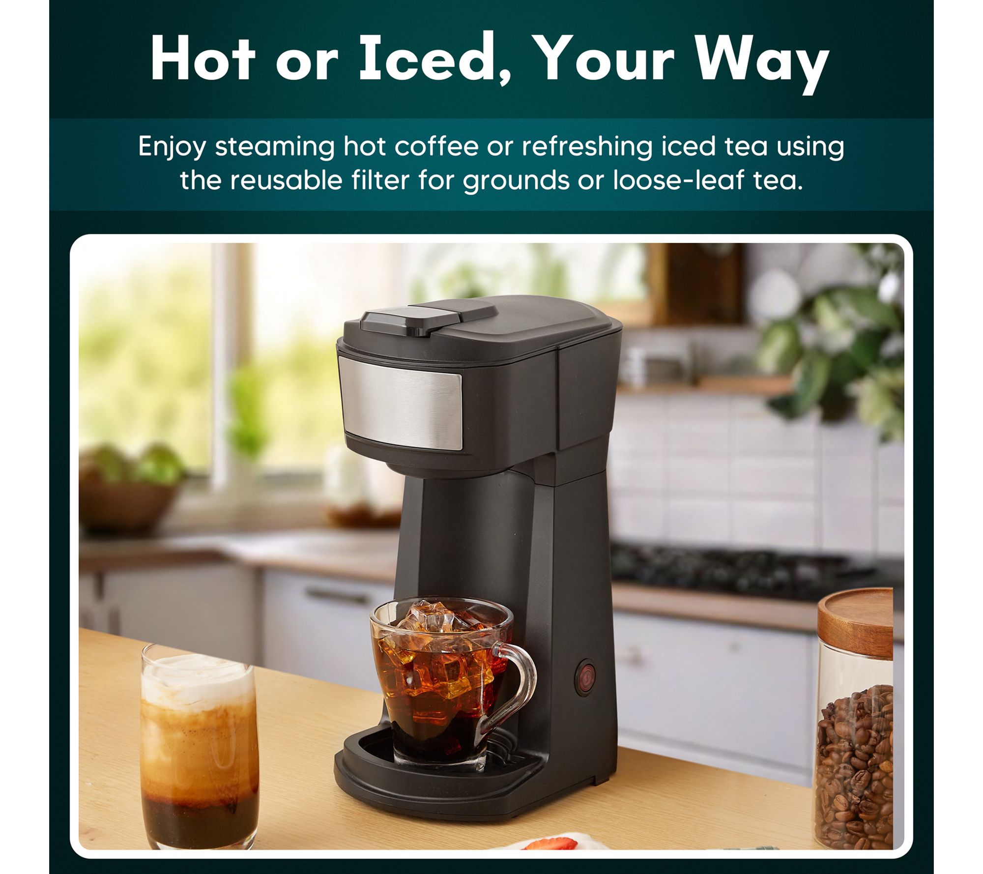Start your morning or wind down your afternoon with a 2-in-1 K-Cup® Iced Coffee Maker that lets you brew your favorite iced or hot beverages at home or on the go. Whether you crave a refreshing iced coffee or a cozy cup of tea, enjoy cafe-style drinks in minutes -- no more waiting in line or compromising on taste. From Elite Cuisine.