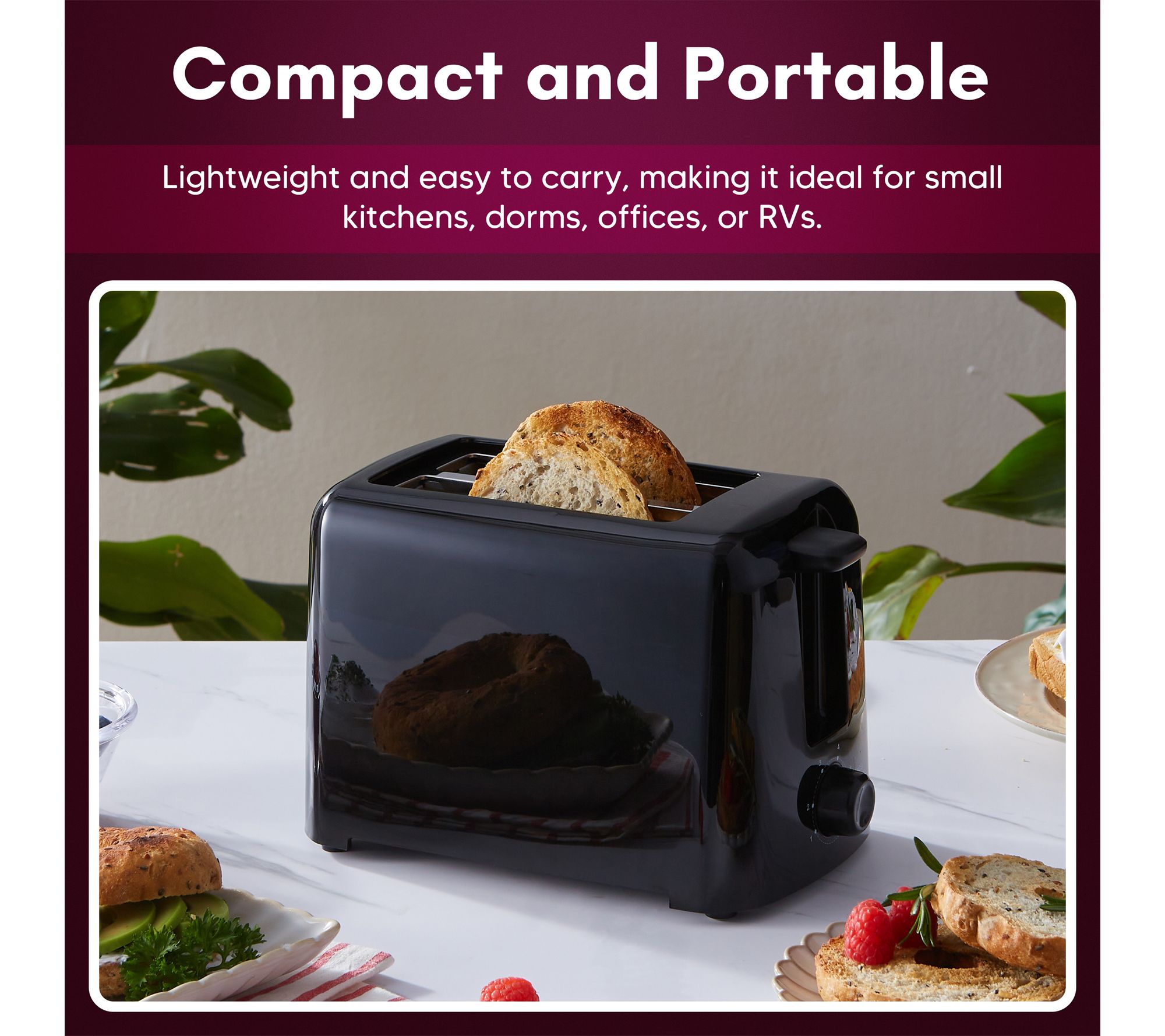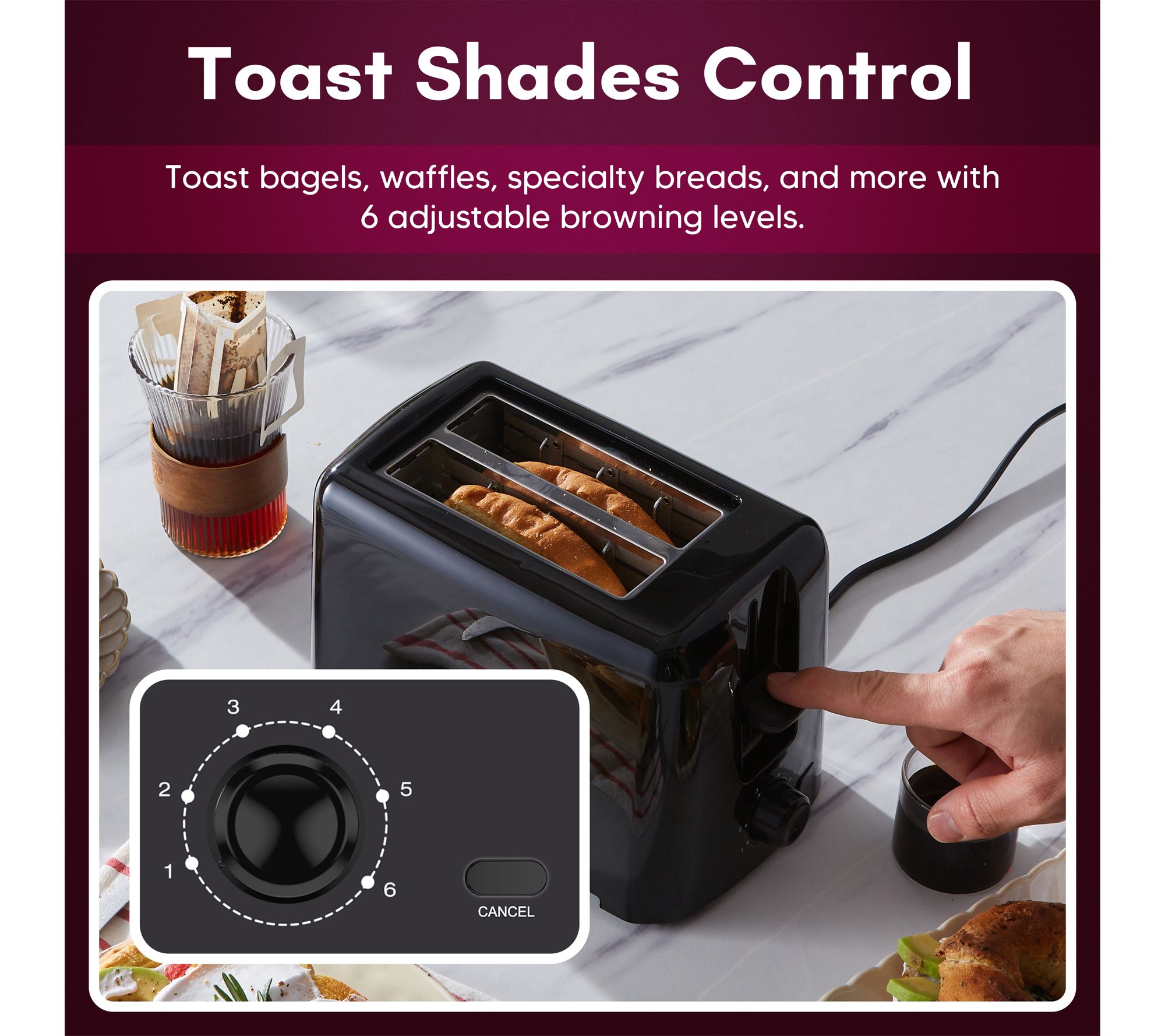 Start your morning routine with the Elite Cuisine 2-Slice Cool Touch Toaster, designed to deliver crisp, golden toast just the way you like it. With six adjustable shade settings, a convenient lever for easy removal, and a drop-down crumb tray for simple cleanup, breakfast prep becomes hassle-free. The cool-touch exterior allows for safe handling even when in use. From Elite Cuisine.