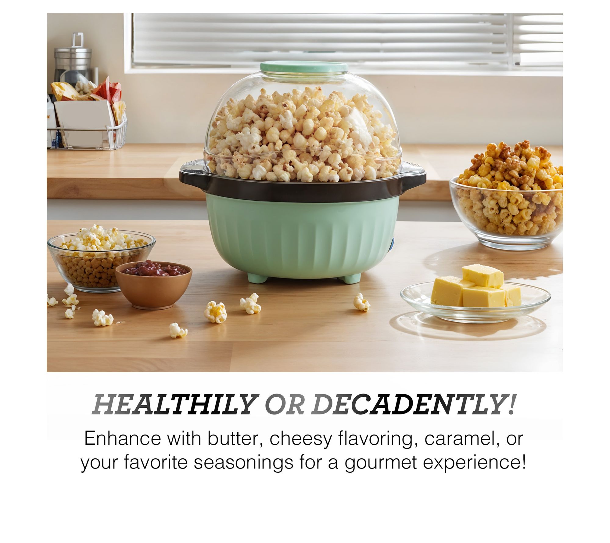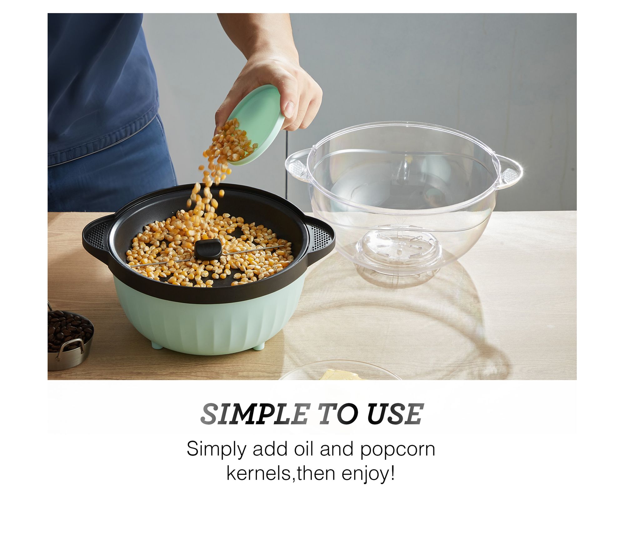 • Includes popcorn popper base, non-stick heating plate, clear lid, lid/vent cover