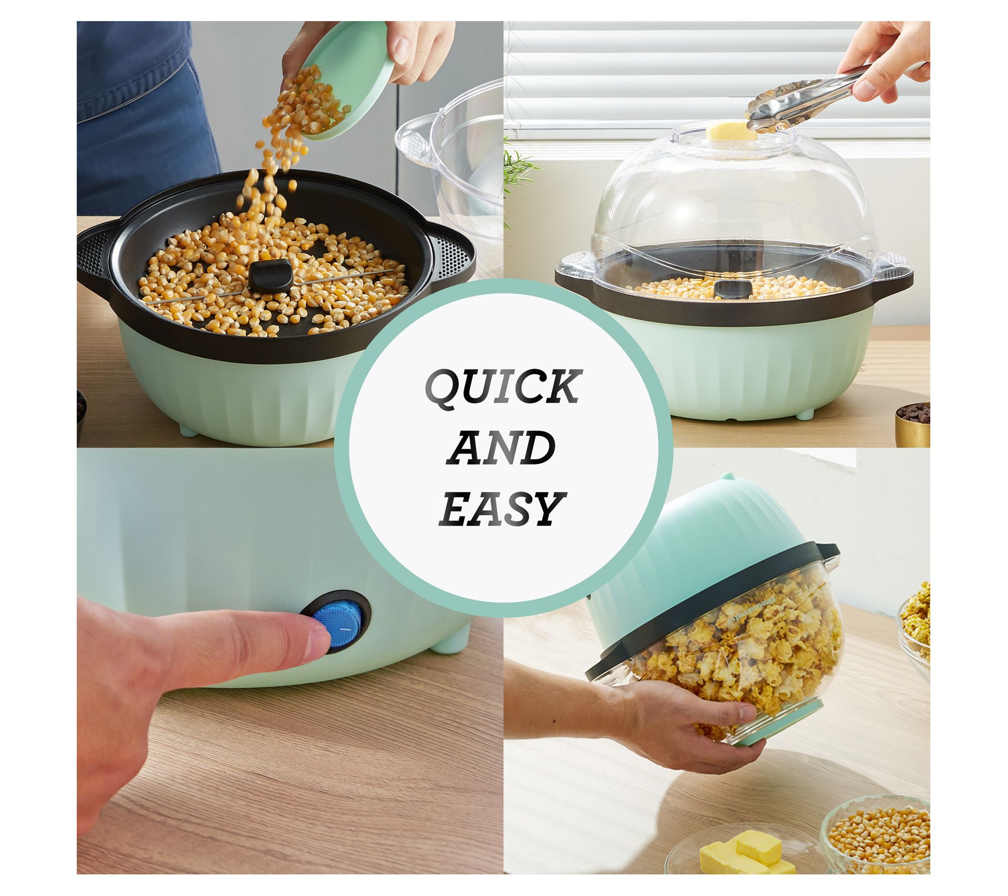 Enjoy irresistibly fresh and crispy popcorn right from the comfort of your home with this efficient electric popcorn maker. With a 4.5-quart capacity and a unique electric stirring rod, it ensures a high pop rate without preheating. Plus, the dual-function cover doubles as a serving bowl for easy snacking. From Elite Cuisine.