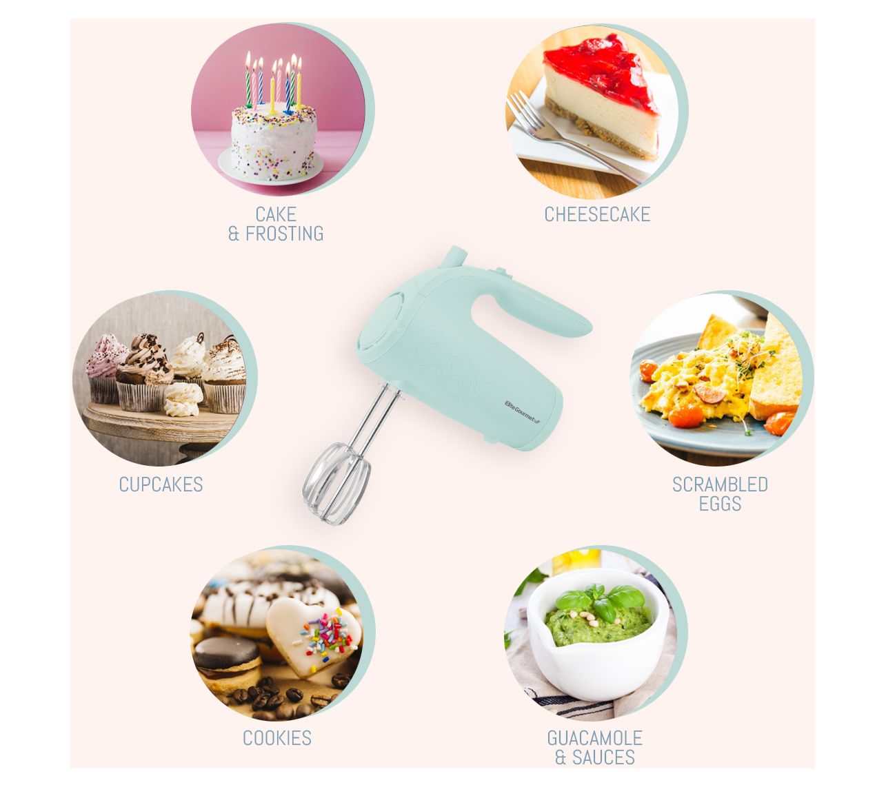 Make quick work of mixing batter, whipping eggs, or stirring up sauces with the versatility of this five-speed hand mixer. From Elite Gourmet.
