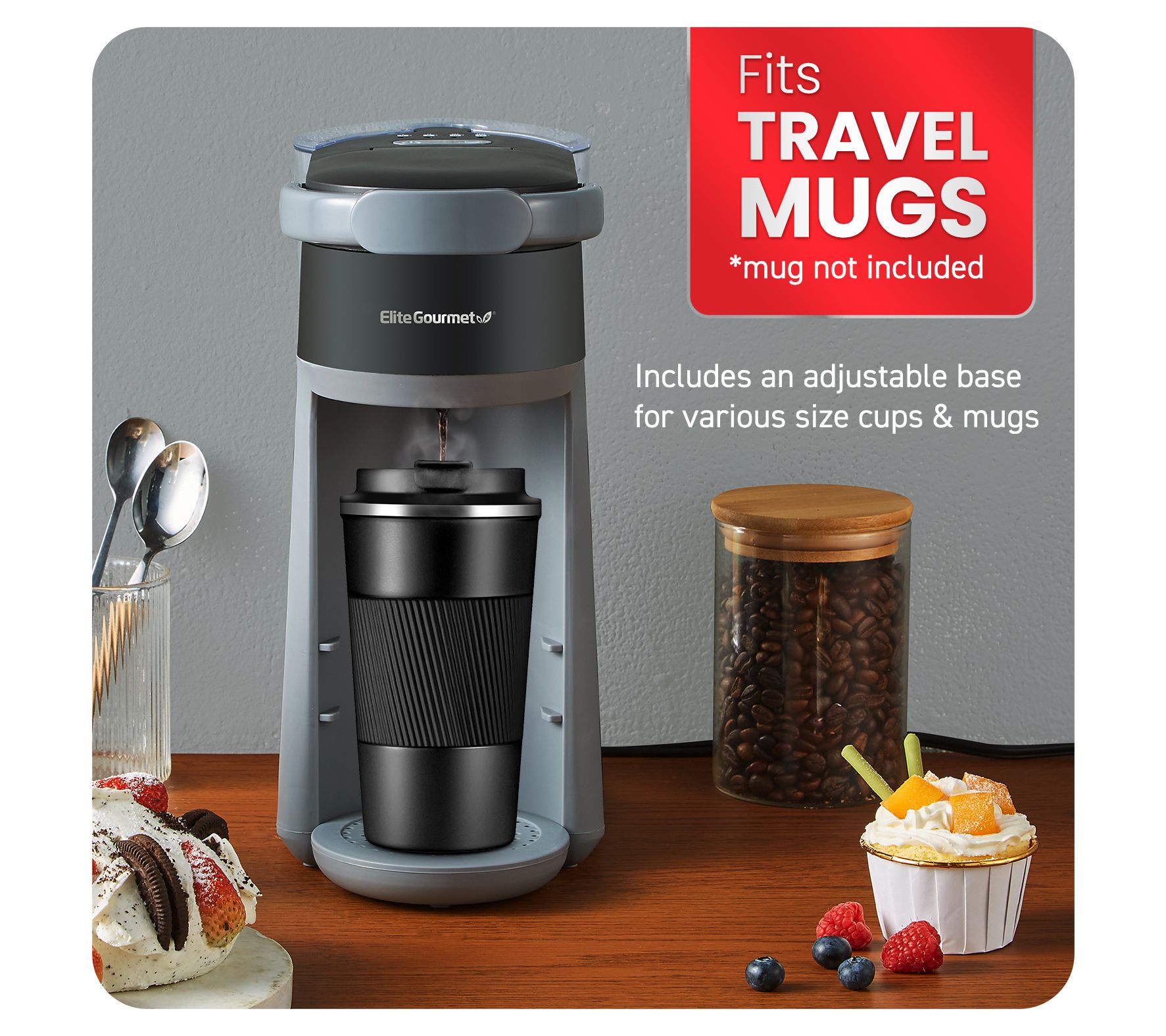 Whether you're popping in a quick K-cup, making fresh ground coffee, or enjoying a cup of afternoon loose leaf tea, this clever 2-in-1 coffee maker does it all and gives you delicious results every time. From Elite Gourmet.