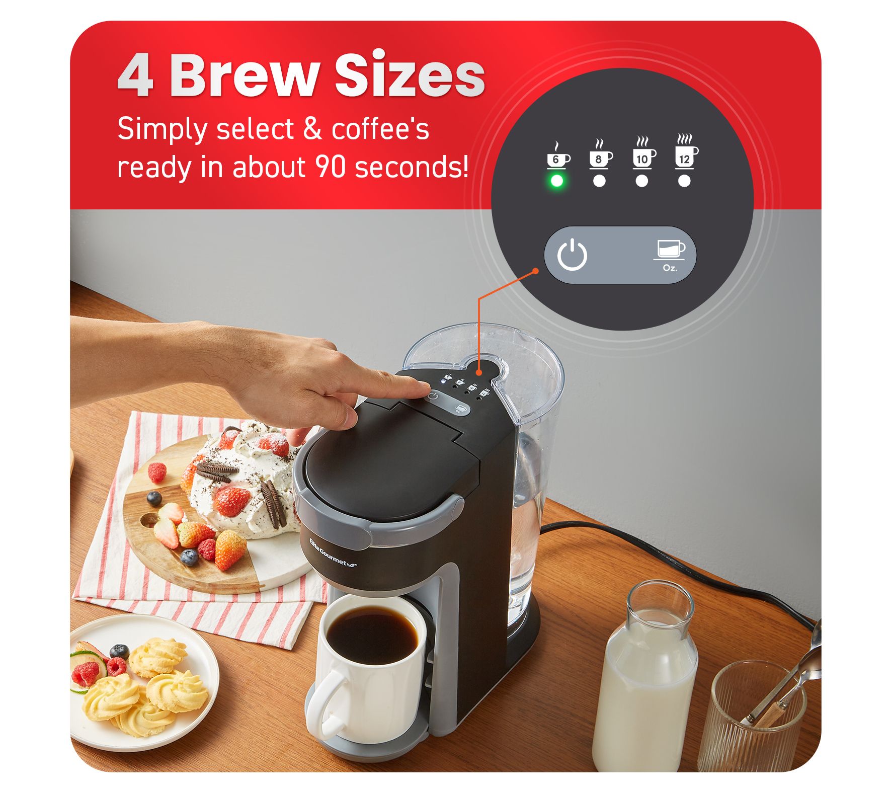 • Customizable brew size: 6-, 8-, 10-, or 12-oz