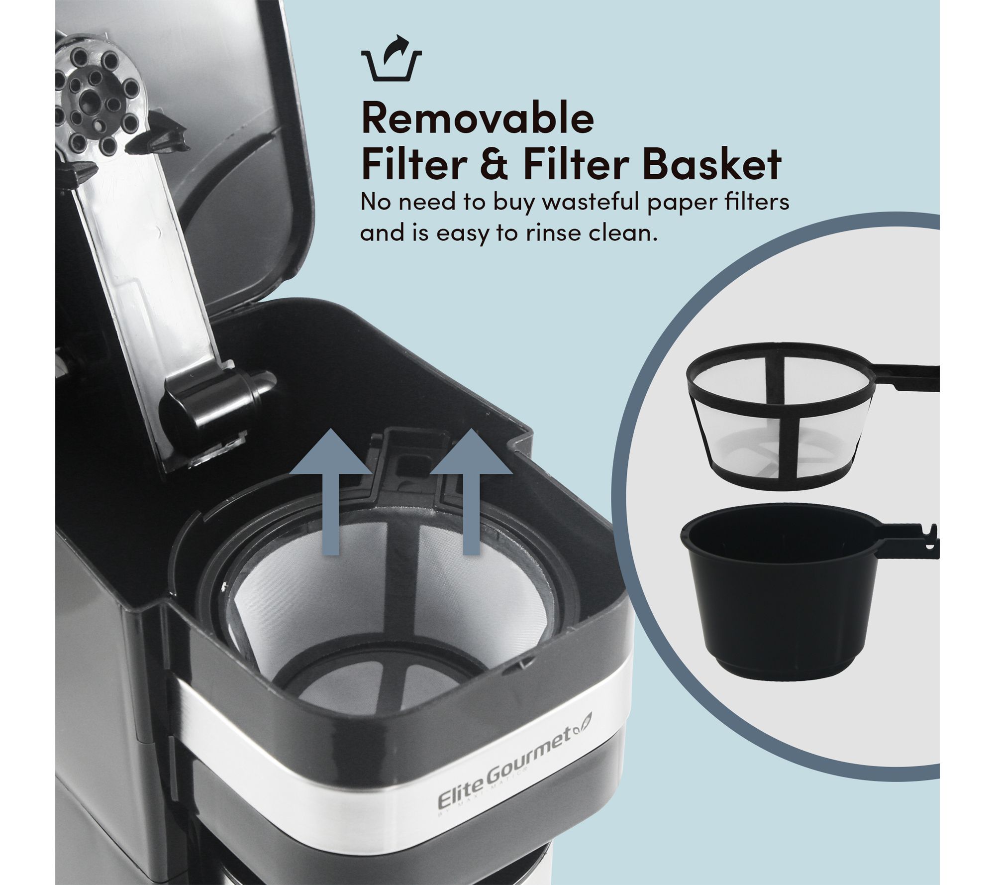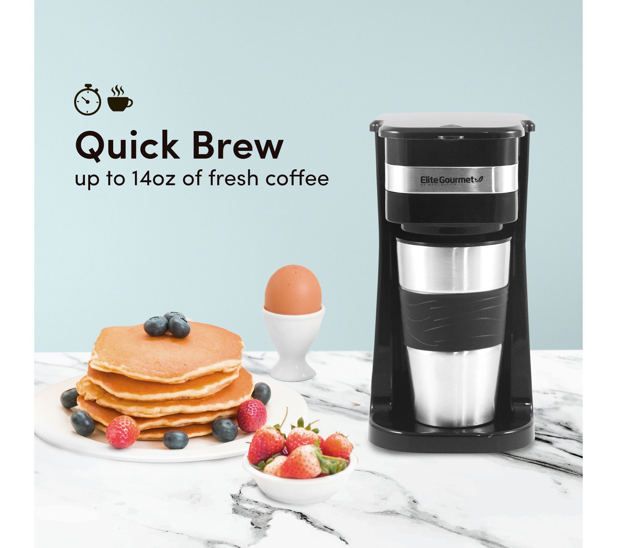 Making a delicious cup of steaming coffee is a snap with this convenient single-serve machine, featuring an insulated stainless steel travel mug so you can take your morning boost on the go. From Elite Gourmet.