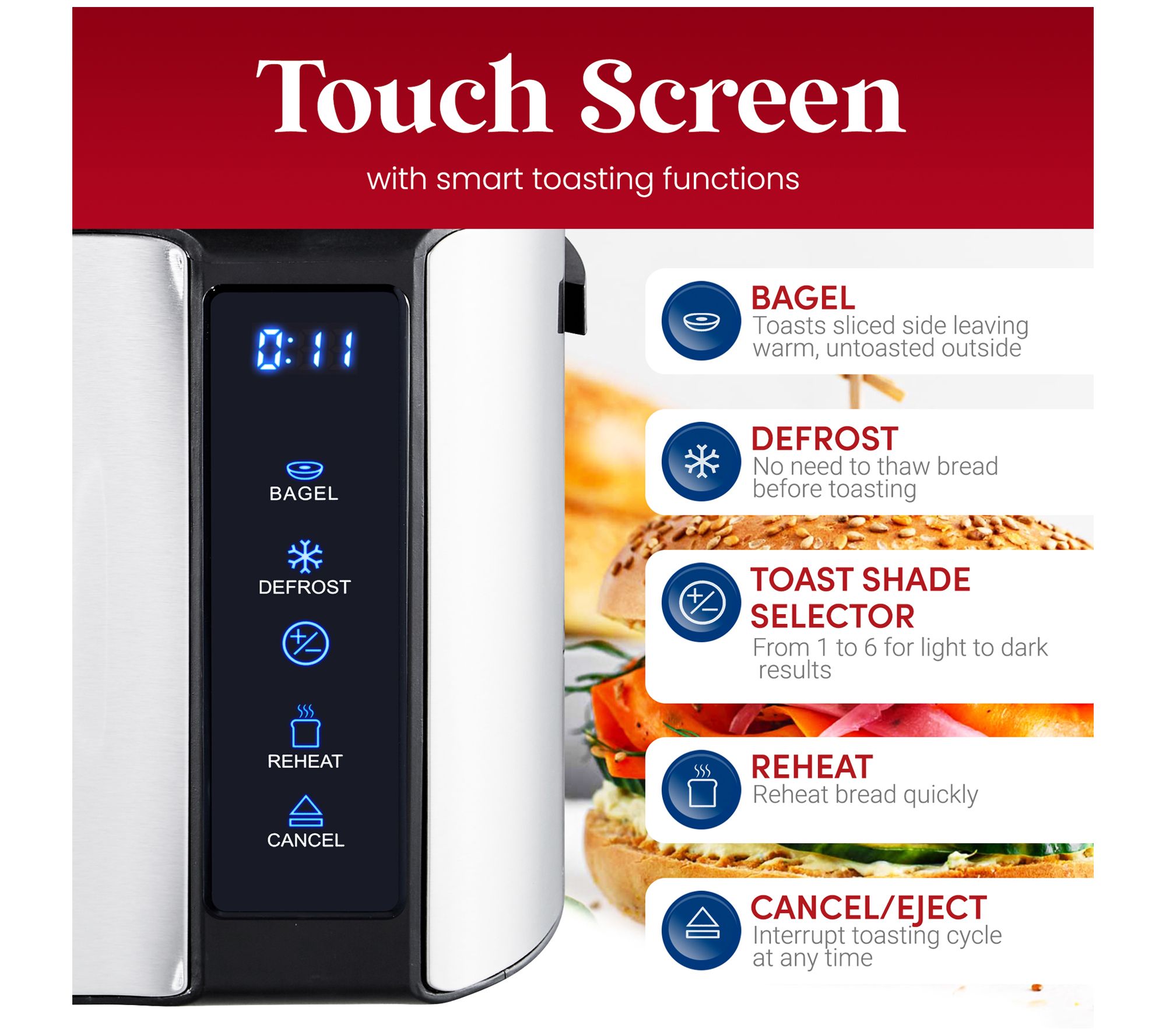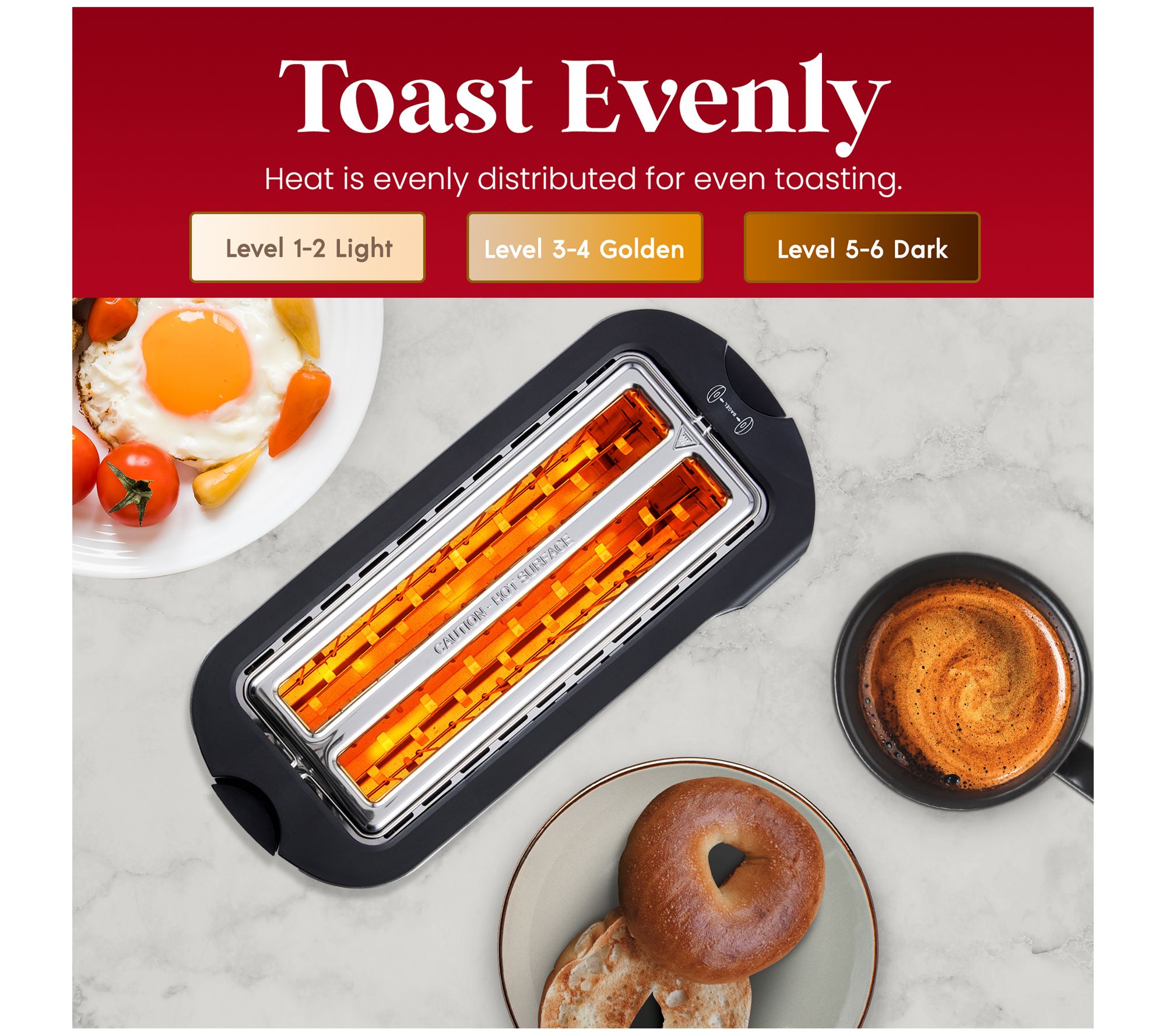 • Six toast shade options; adjusts toast time based on internal thermostat settings