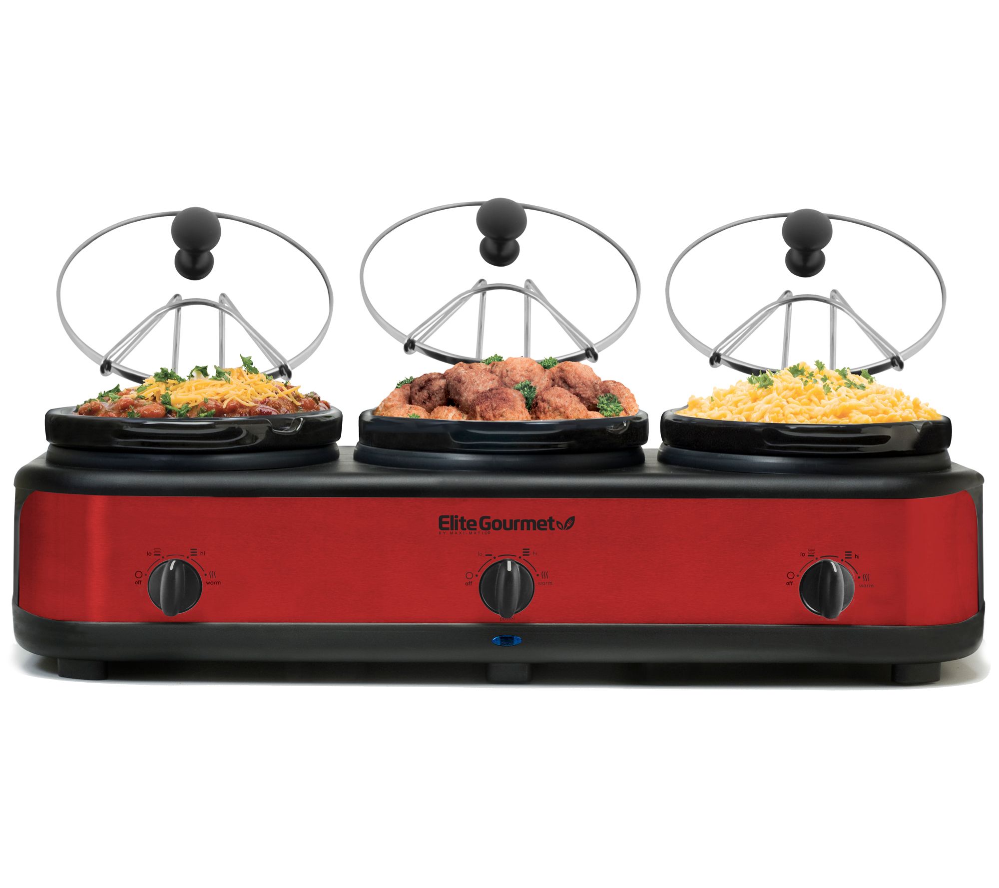 Elite Gourmet Triple Slow Cooker with (3) 2.5-qt Dishes