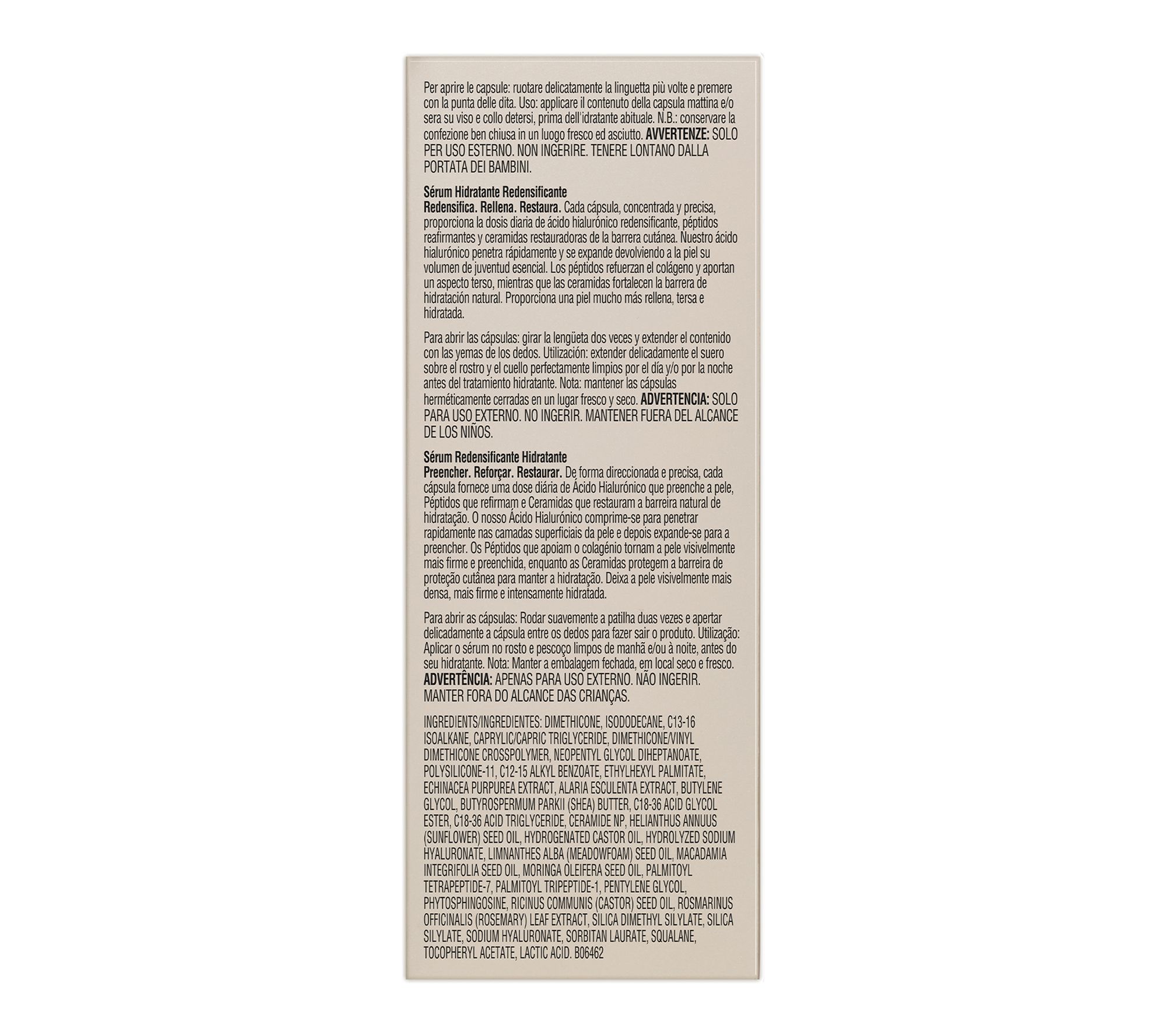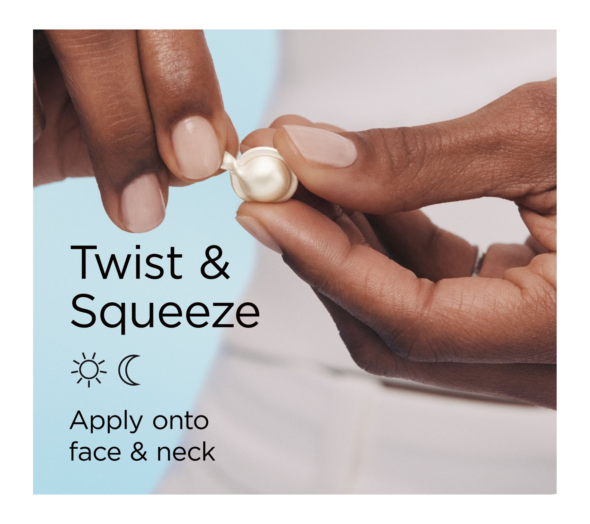 How do I use it: Apply after cleansing. Twist open the capsule, dispense the serum onto your hand, and apply to the face and neck. For use day and night.