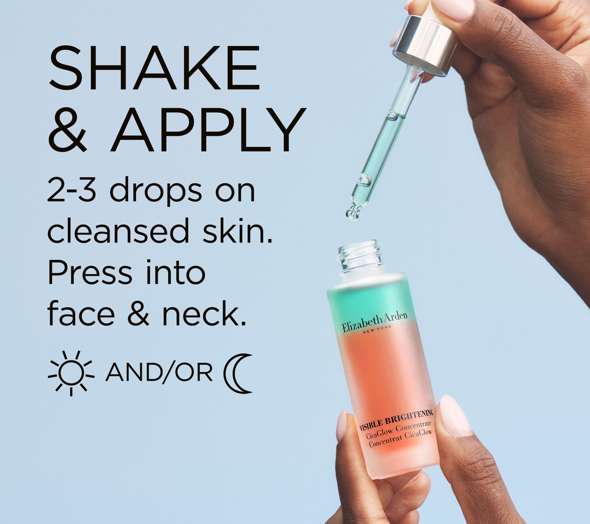 How do I use it: After cleansing, gently shake well to activate. Apply two to three drops to skin and gently press into face and neck until fully absorbed. For use in the morning and/or evening.