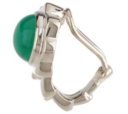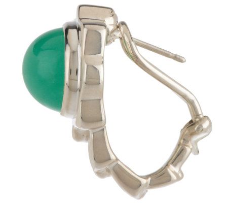 Take going green to a whole new level in these highly polished sterling silver earrings. An oval, green chrysoprase cabochon is beautifully bezel set at the center of the flower design. The tapered, step pattern, J-hoop is widest at the top for a distinctive look. From Elizabeth Rand Sterling Silver Jewelry.