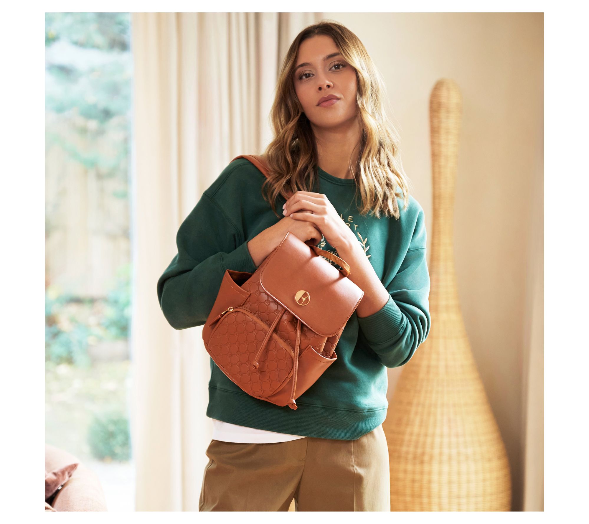 Elevate your daily look with the ELLE Compass mini backpack. Its chic, compact design effortlessly transitions from errands to adventures while keeping your essentials secure and organized. The style boasts a monogrammed pattern that adds a touch of elegance to any outfit. With adjustable shoulder straps and ample pockets, convenience and comfort are always within reach. From ELLE.