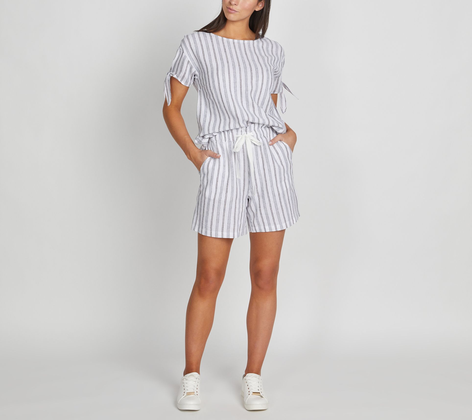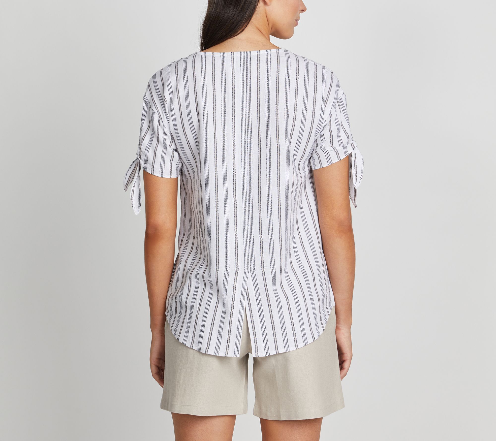 Ellen Tracy Boat Neck Linen Top with Knotted Sleves