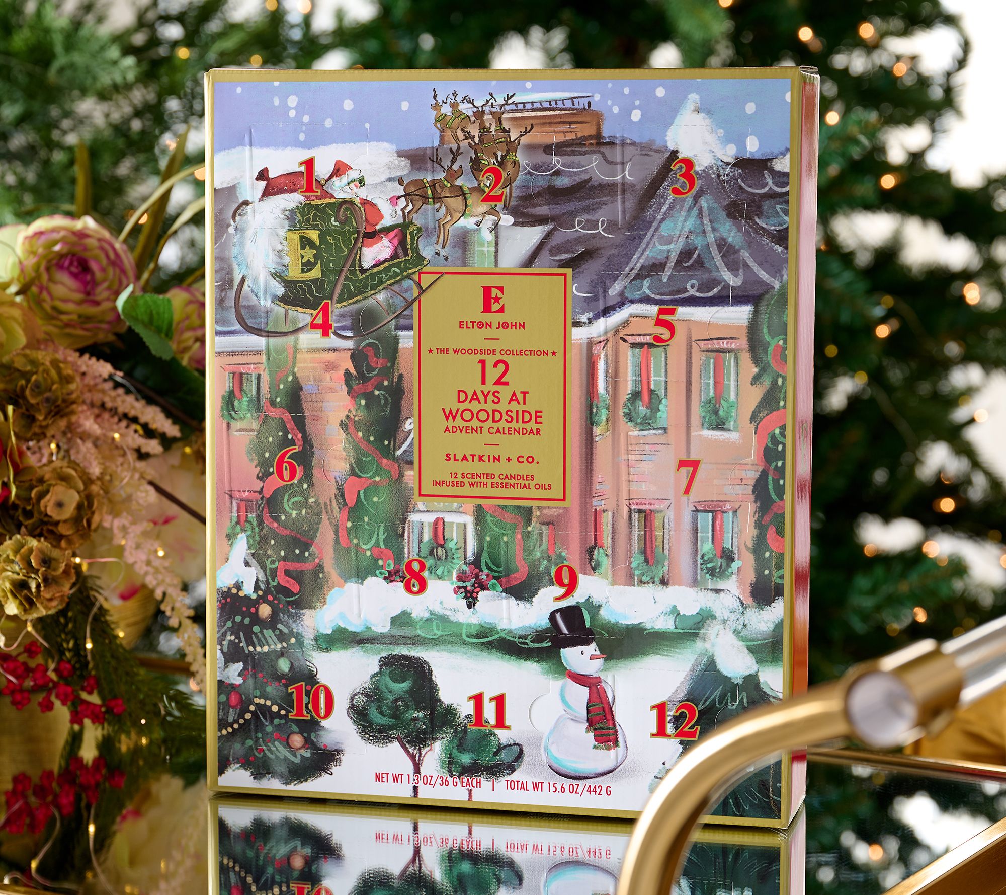 Twelve days of holiday magic await as you lift the lid of this Elton John advent calendar, each door revealing a scented candle that fills your home with the spirit of an English Christmas. Gather the family at dusk, light a new fragrance, and watch memories unfold amid winter woods, blooming roses, and sweet delicacies. From Elton John by Slatkin + Co.