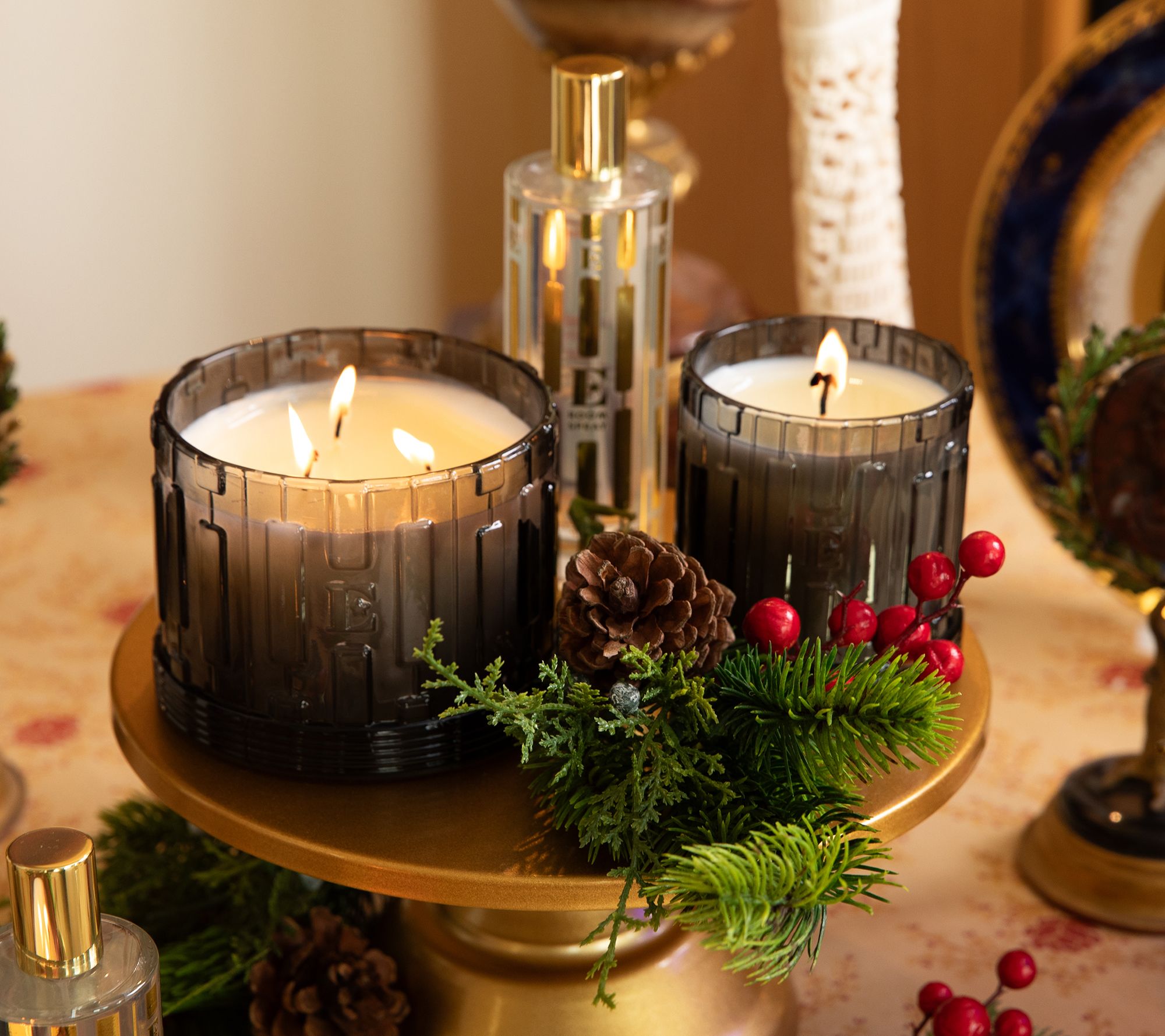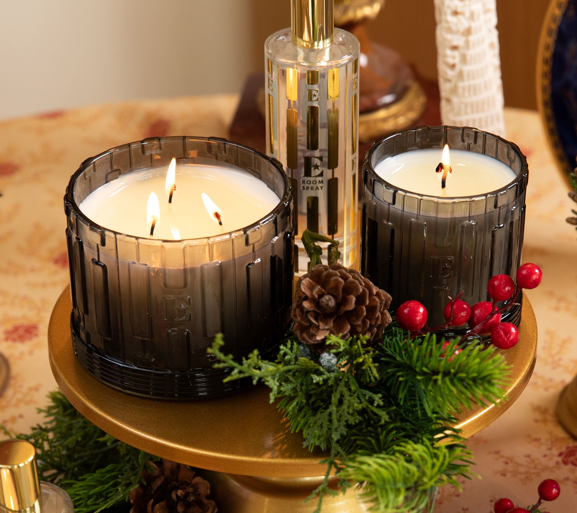 Includes 14-oz candle, 8-oz candle, and 4-fl oz room spray in Fireside Mornings scent