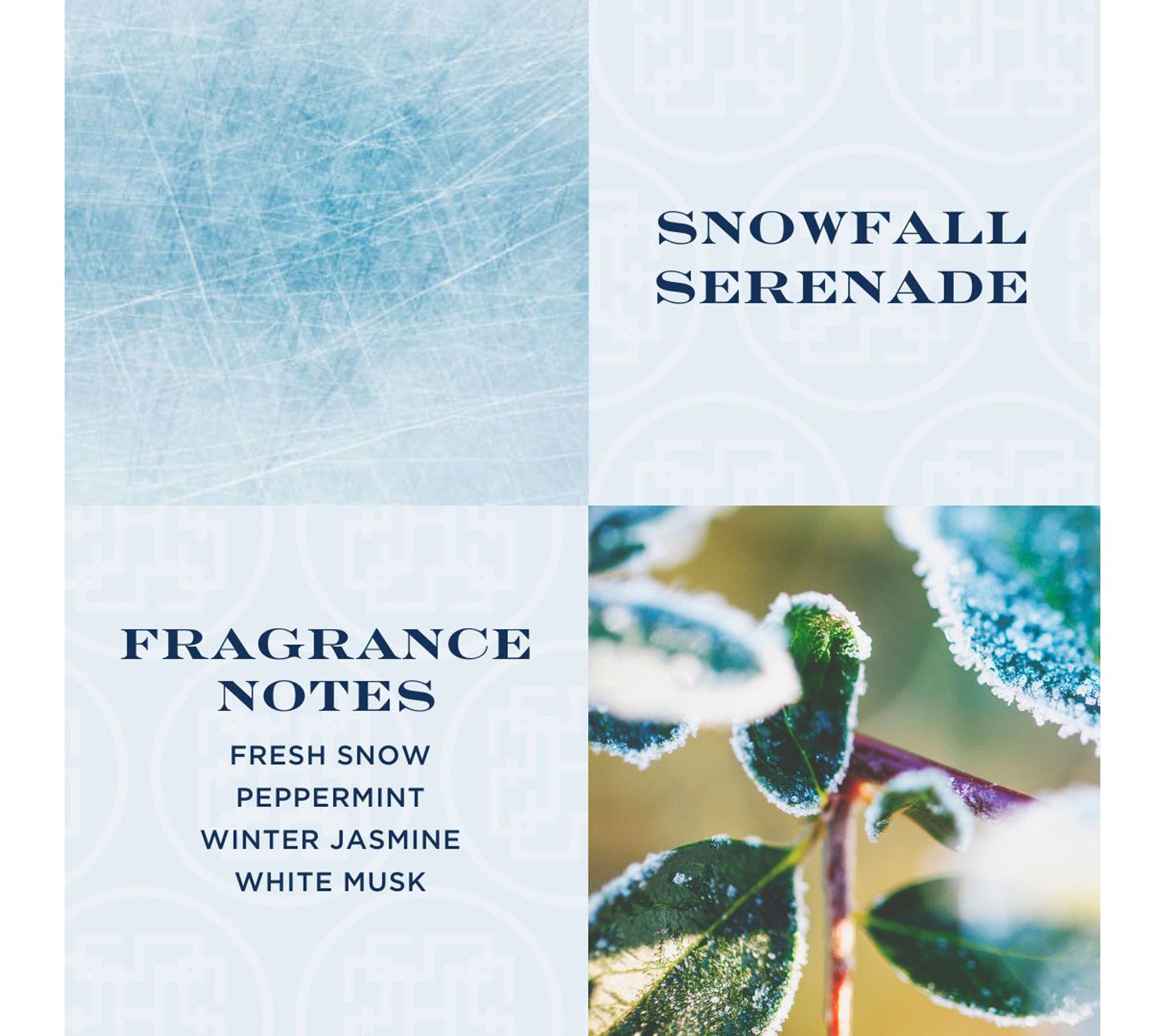 Includes 14-oz candle, 8-oz candle, and 4-fl oz room spray in Snowfall Serenade scent