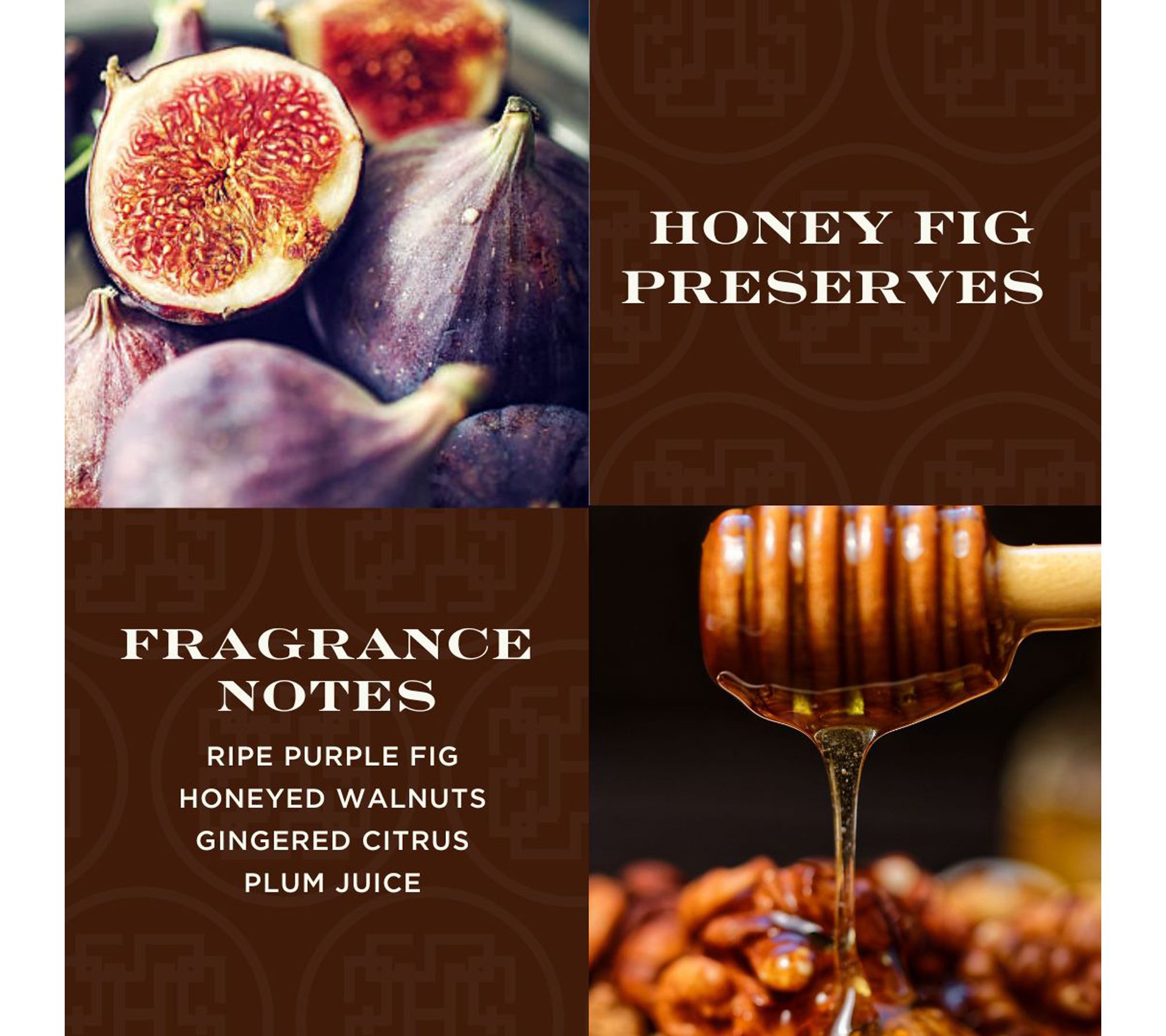 Twinkling lights. Family traditions. Cherished memories. Let this Honey Fig & Preserves collection -- featuring a 14-oz candle, 8-oz candle, and room spray -- elevate your space with the exceptional luxury of essential oils. Imagine ripe, succulent figs and English walnuts entwined with sweet English honey capturing the warmth of holiday traditions -- now you can create that same sweet, spiced ambiance in any room for a total home scent immersion.