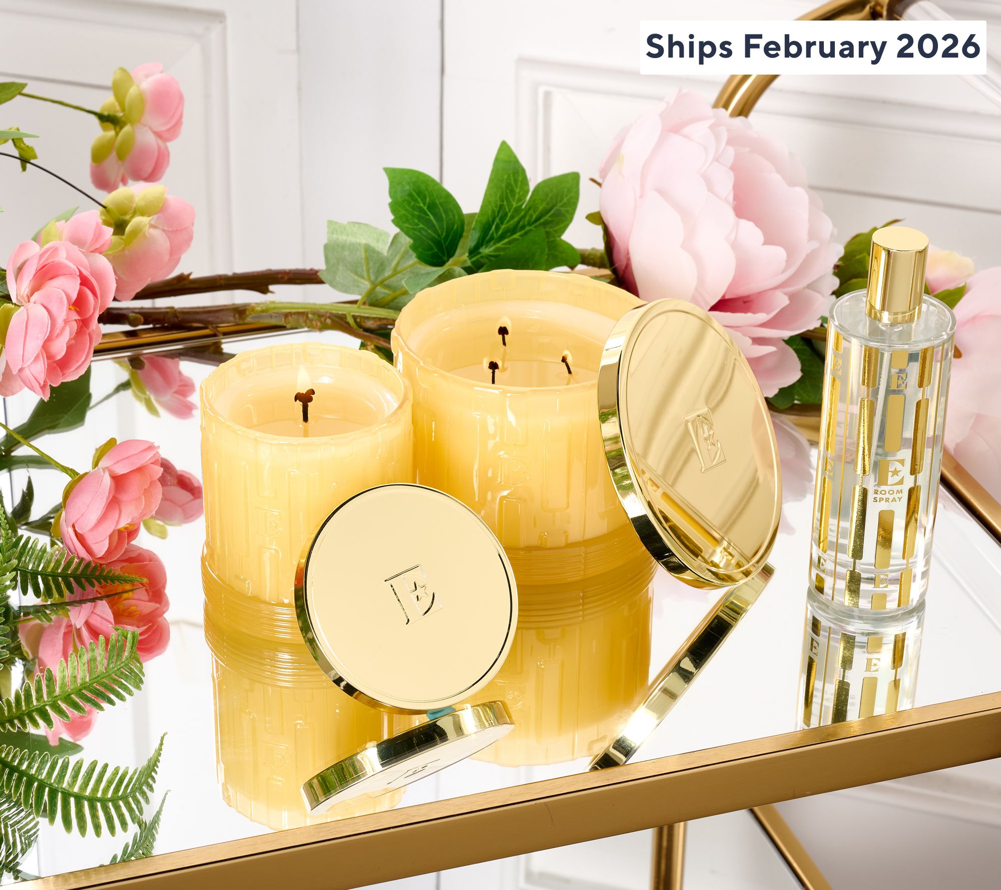 Each shipment includes 14-oz scented candle, 8-oz scented candle, and 4-fl oz scented room spray; future shipments arrive February and May 2026 for a total of three shipments
